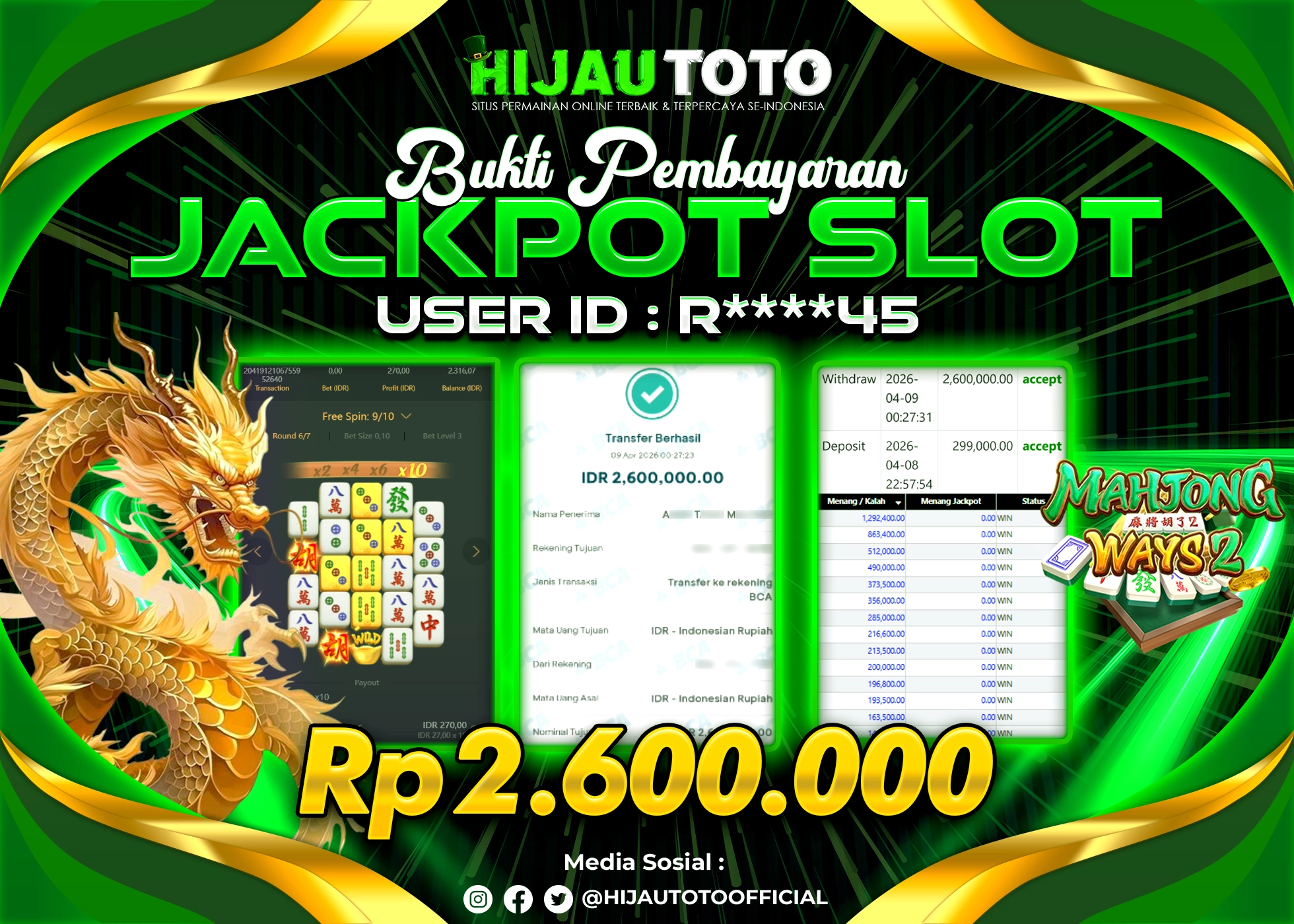 Bergabung dengan HIJAUTOTO sangat mudah dan cepat. Cukup lakukan pendaftaran dengan data lengkap, lakukan deposit minimal Rp5.000 melalui berbagai metode termasuk QRIS, dan mulai bertaruh dengan minimal taruhan Rp100. Dapatkan juga bonus new member 100% untuk modal bermain lebih besar.