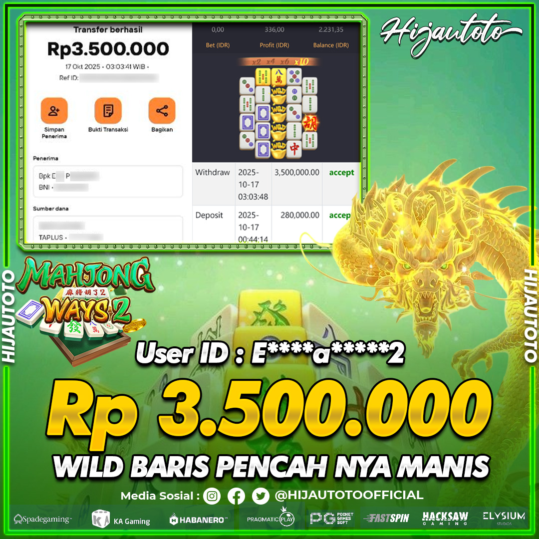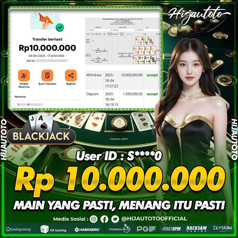 Selamat datang di HIJAUTOTO, tempatnya seru-seruan dan cuan besar! Mulai main cukup dengan modal Rp5.000 aja, taruhan super murah dari Rp100 perak! Mau main slot yang penuh warna? Atau togel dari 20 pasaran paling hits? Atau mungkin tembak ikan yang bikin deg-degan? Tenang, ada juga taruhan bola, sabung ayam, dan live casino yang bikin suasana makin hidup! Daftar sekarang dan dapetin bonus new member 100% langsung, biar modalmu makin tebal. Deposit gampang banget, bisa pakai QRIS, dan kalau butuh bantuan, customer service kita siap 24 jam nonstop. Jadi, tunggu apa lagi? Yuk, gabung dan bawa pulang kemenangannya cuma di HIJAUTOTO!