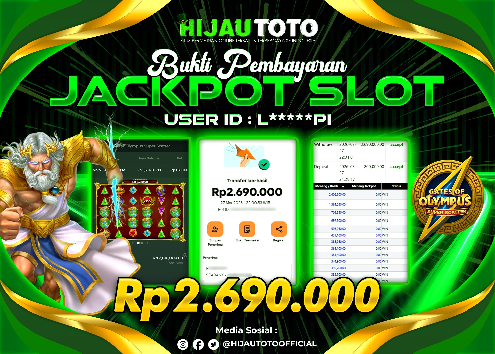 Bergabung dengan HIJAUTOTO sangat mudah dan cepat. Cukup lakukan pendaftaran dengan data lengkap, lakukan deposit minimal Rp5.000 melalui berbagai metode termasuk QRIS, dan mulai bertaruh dengan minimal taruhan Rp100. Dapatkan juga bonus new member 100% untuk modal bermain lebih besar.