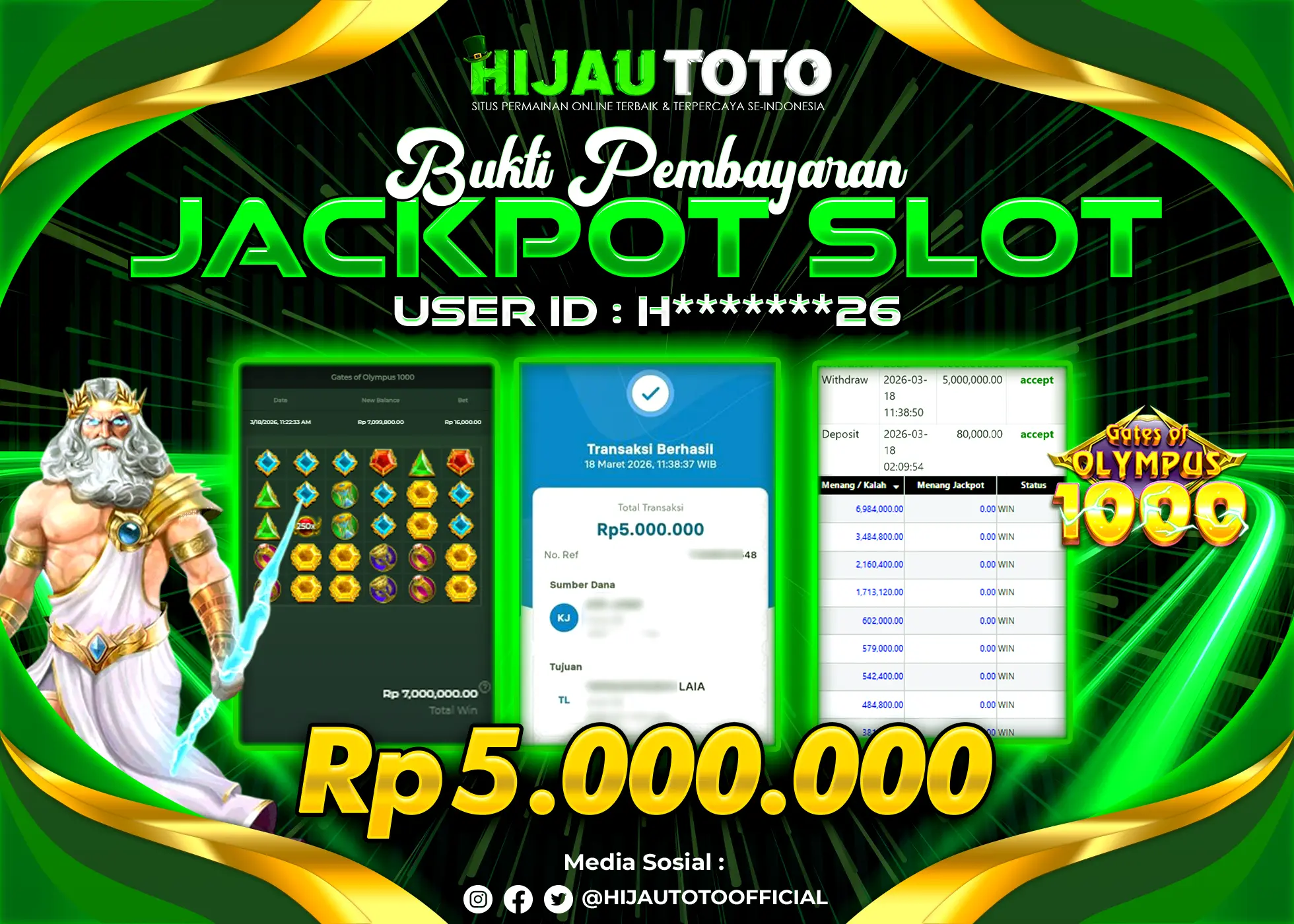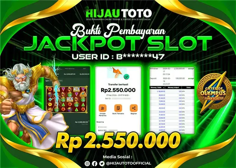 Selamat datang di HIJAUTOTO, tempatnya seru-seruan dan cuan besar! Mulai main cukup dengan modal Rp5.000 aja, taruhan super murah dari Rp100 perak! Mau main slot yang penuh warna? Atau togel dari 20 pasaran paling hits? Atau mungkin tembak ikan yang bikin deg-degan? Tenang, ada juga taruhan bola, sabung ayam, dan live casino yang bikin suasana makin hidup! Daftar sekarang dan dapetin bonus new member 100% langsung, biar modalmu makin tebal. Deposit gampang banget, bisa pakai QRIS, dan kalau butuh bantuan, customer service kita siap 24 jam nonstop. Jadi, tunggu apa lagi? Yuk, gabung dan bawa pulang kemenangannya cuma di HIJAUTOTO!