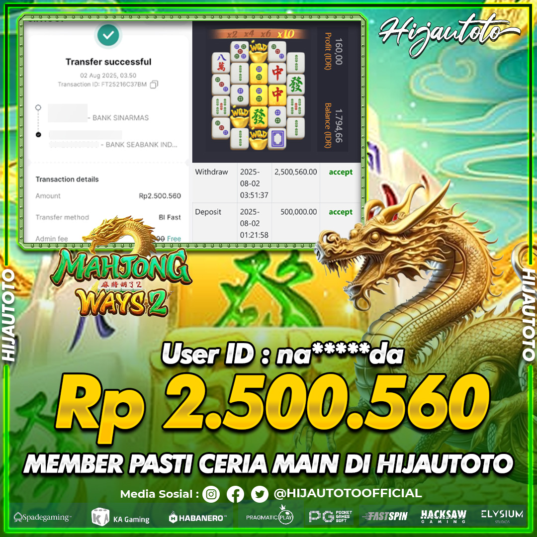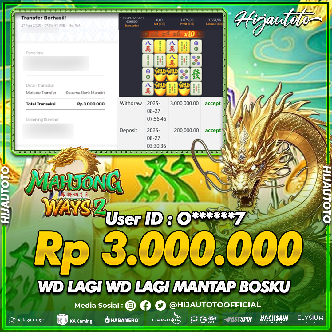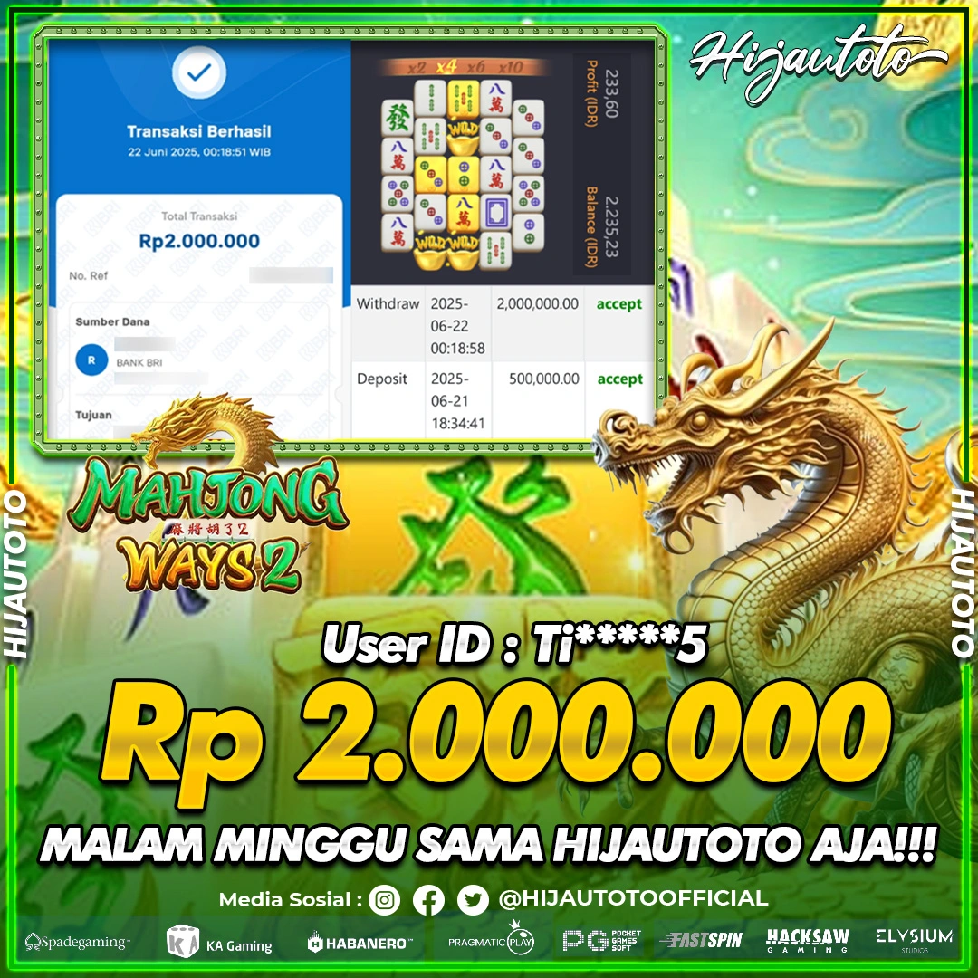 Selamat datang di HIJAUTOTO, tempatnya seru-seruan dan cuan besar! Mulai main cukup dengan modal Rp5.000 aja, taruhan super murah dari Rp100 perak! Mau main slot yang penuh warna? Atau togel dari 20 pasaran paling hits? Atau mungkin tembak ikan yang bikin deg-degan? Tenang, ada juga taruhan bola, sabung ayam, dan live casino yang bikin suasana makin hidup! Daftar sekarang dan dapetin bonus new member 100% langsung, biar modalmu makin tebal. Deposit gampang banget, bisa pakai QRIS, dan kalau butuh bantuan, customer service kita siap 24 jam nonstop. Jadi, tunggu apa lagi? Yuk, gabung dan bawa pulang kemenangannya cuma di HIJAUTOTO!
