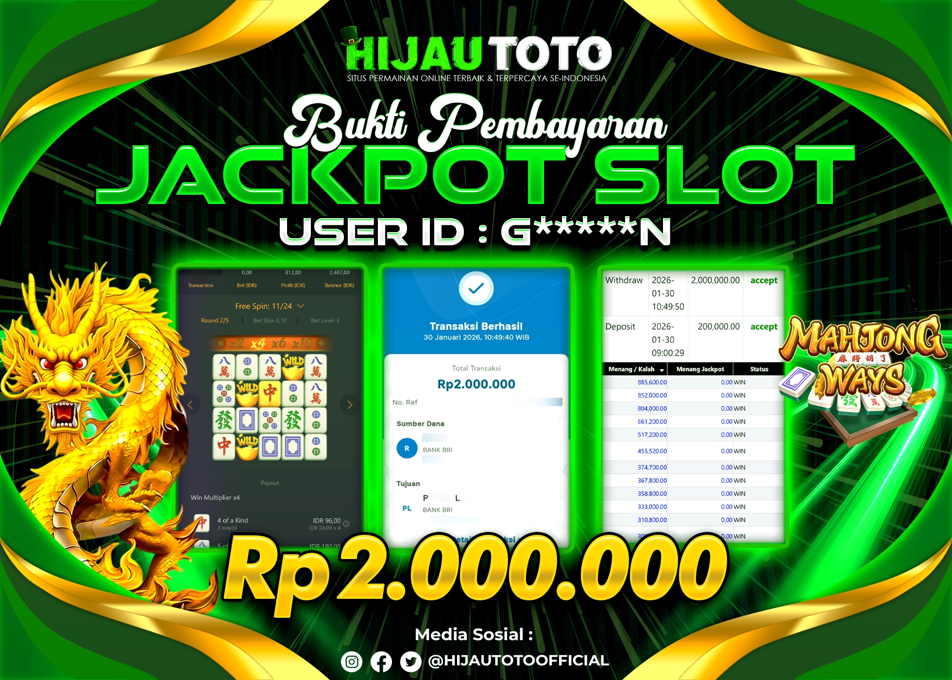 Bergabung dengan HIJAUTOTO sangat mudah dan cepat. Cukup lakukan pendaftaran dengan data lengkap, lakukan deposit minimal Rp5.000 melalui berbagai metode termasuk QRIS, dan mulai bertaruh dengan minimal taruhan Rp100. Dapatkan juga bonus new member 100% untuk modal bermain lebih besar.