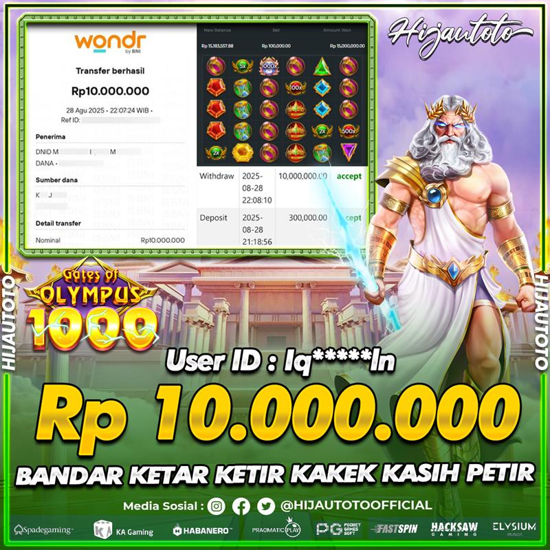 β¨ JACKPOT DI SLOT GATES OF OLYMPUS 1000 β¨