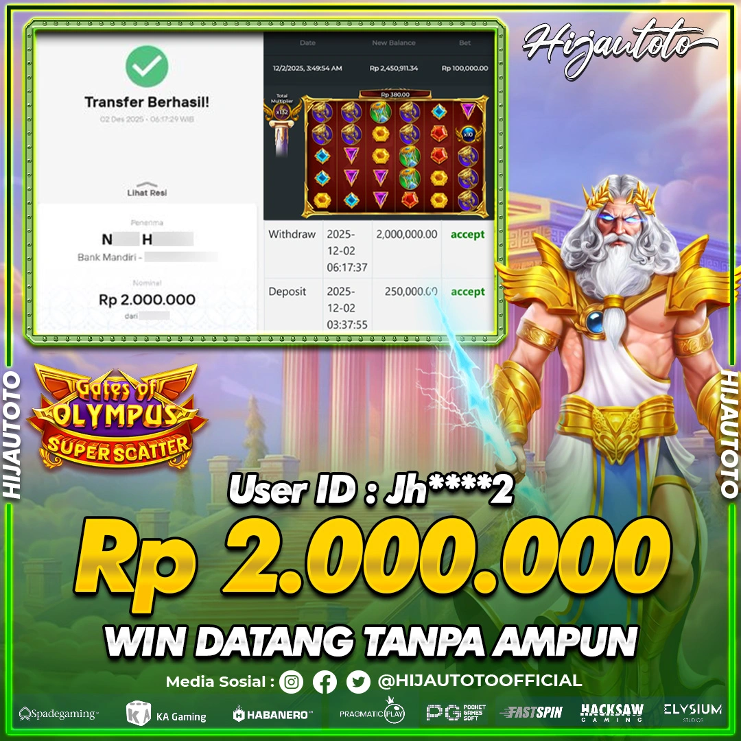 Selamat datang di HIJAUTOTO, tempatnya seru-seruan dan cuan besar! Mulai main cukup dengan modal Rp5.000 aja, taruhan super murah dari Rp100 perak! Mau main slot yang penuh warna? Atau togel dari 20 pasaran paling hits? Atau mungkin tembak ikan yang bikin deg-degan? Tenang, ada juga taruhan bola, sabung ayam, dan live casino yang bikin suasana makin hidup! Daftar sekarang dan dapetin bonus new member 100% langsung, biar modalmu makin tebal. Deposit gampang banget, bisa pakai QRIS, dan kalau butuh bantuan, customer service kita siap 24 jam nonstop. Jadi, tunggu apa lagi? Yuk, gabung dan bawa pulang kemenangannya cuma di HIJAUTOTO!