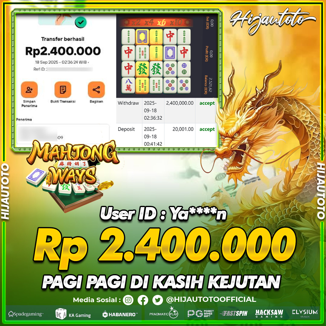 Selamat datang di HIJAUTOTO, tempatnya seru-seruan dan cuan besar! Mulai main cukup dengan modal Rp5.000 aja, taruhan super murah dari Rp100 perak! Mau main slot yang penuh warna? Atau togel dari 20 pasaran paling hits? Atau mungkin tembak ikan yang bikin deg-degan? Tenang, ada juga taruhan bola, sabung ayam, dan live casino yang bikin suasana makin hidup! Daftar sekarang dan dapetin bonus new member 100% langsung, biar modalmu makin tebal. Deposit gampang banget, bisa pakai QRIS, dan kalau butuh bantuan, customer service kita siap 24 jam nonstop. Jadi, tunggu apa lagi? Yuk, gabung dan bawa pulang kemenangannya cuma di HIJAUTOTO!