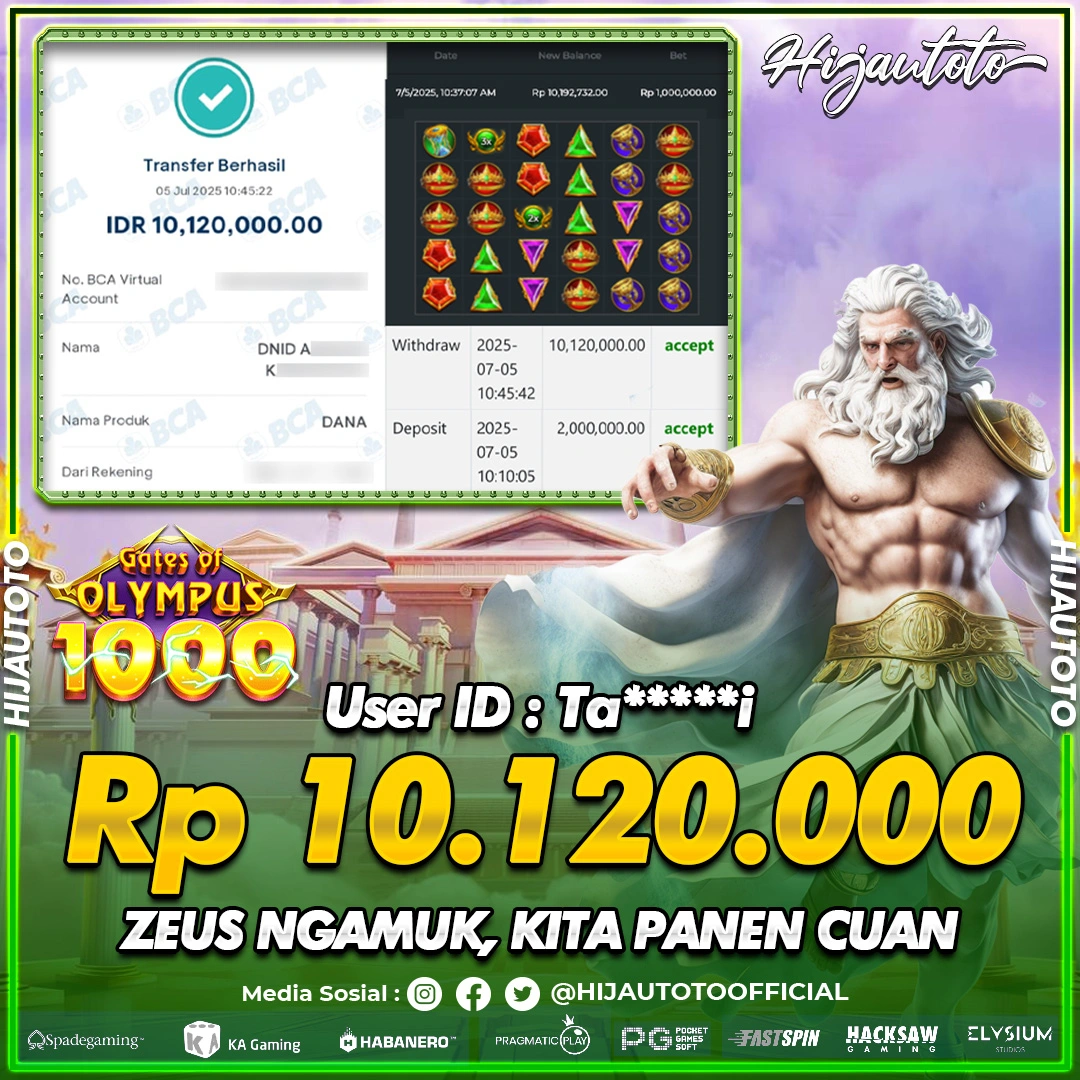 Karena berhasil memenangkan Rp.Rp.5.000.000 dari permainan seru SLOT GATES OF GATOT KACA SUPER SCATTER di HIJAUTOTO! πŸ’°πŸ’Έ