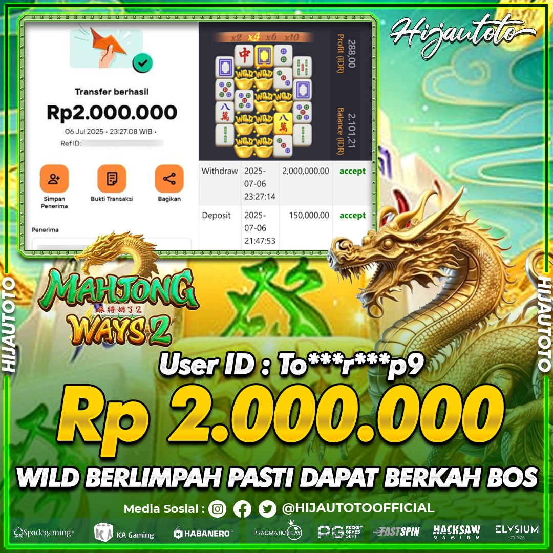 Selamat datang di HIJAUTOTO, tempatnya seru-seruan dan cuan besar! Mulai main cukup dengan modal Rp5.000 aja, taruhan super murah dari Rp100 perak! Mau main slot yang penuh warna? Atau togel dari 20 pasaran paling hits? Atau mungkin tembak ikan yang bikin deg-degan? Tenang, ada juga taruhan bola, sabung ayam, dan live casino yang bikin suasana makin hidup! Daftar sekarang dan dapetin bonus new member 100% langsung, biar modalmu makin tebal. Deposit gampang banget, bisa pakai QRIS, dan kalau butuh bantuan, customer service kita siap 24 jam nonstop. Jadi, tunggu apa lagi? Yuk, gabung dan bawa pulang kemenangannya cuma di HIJAUTOTO!