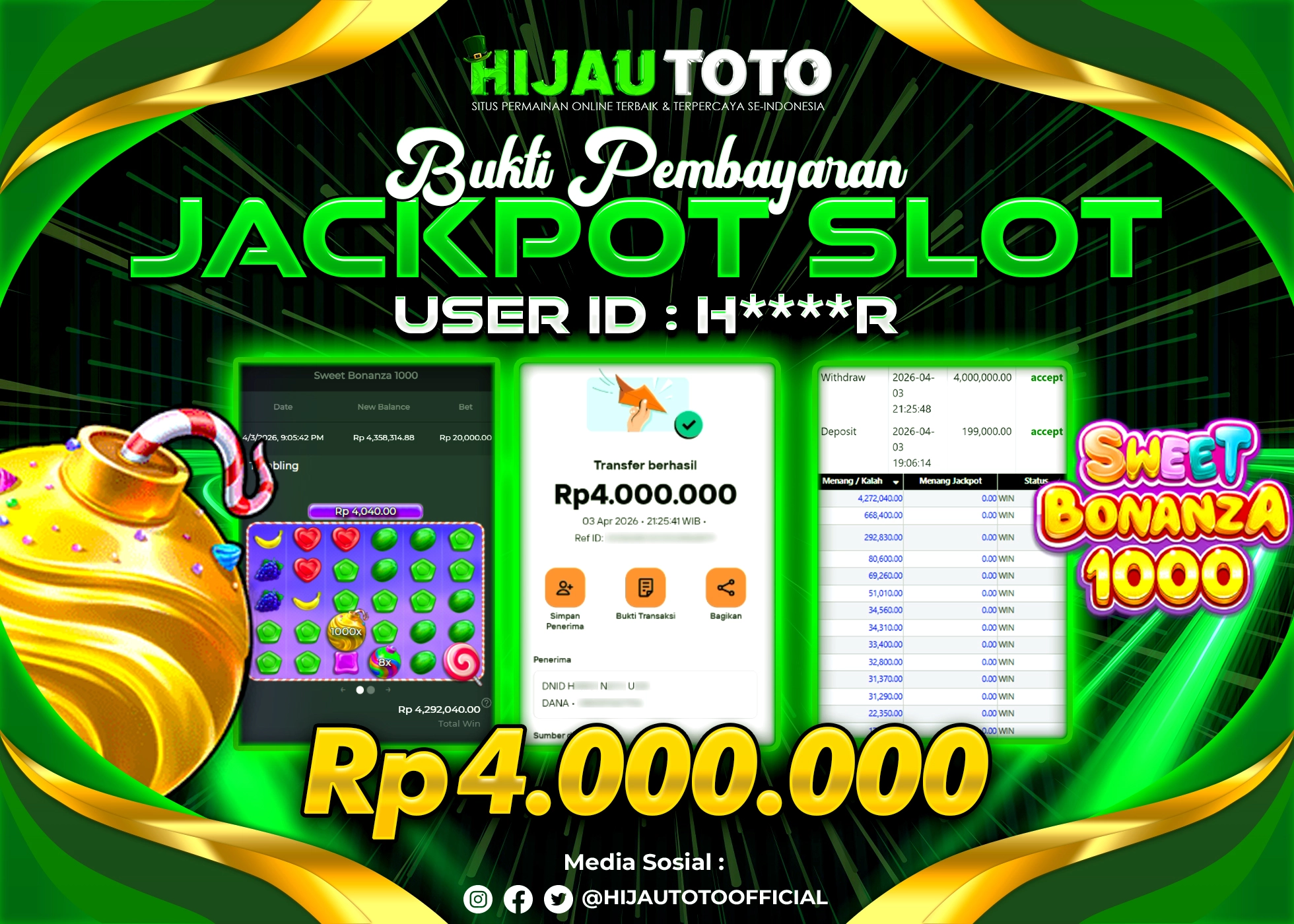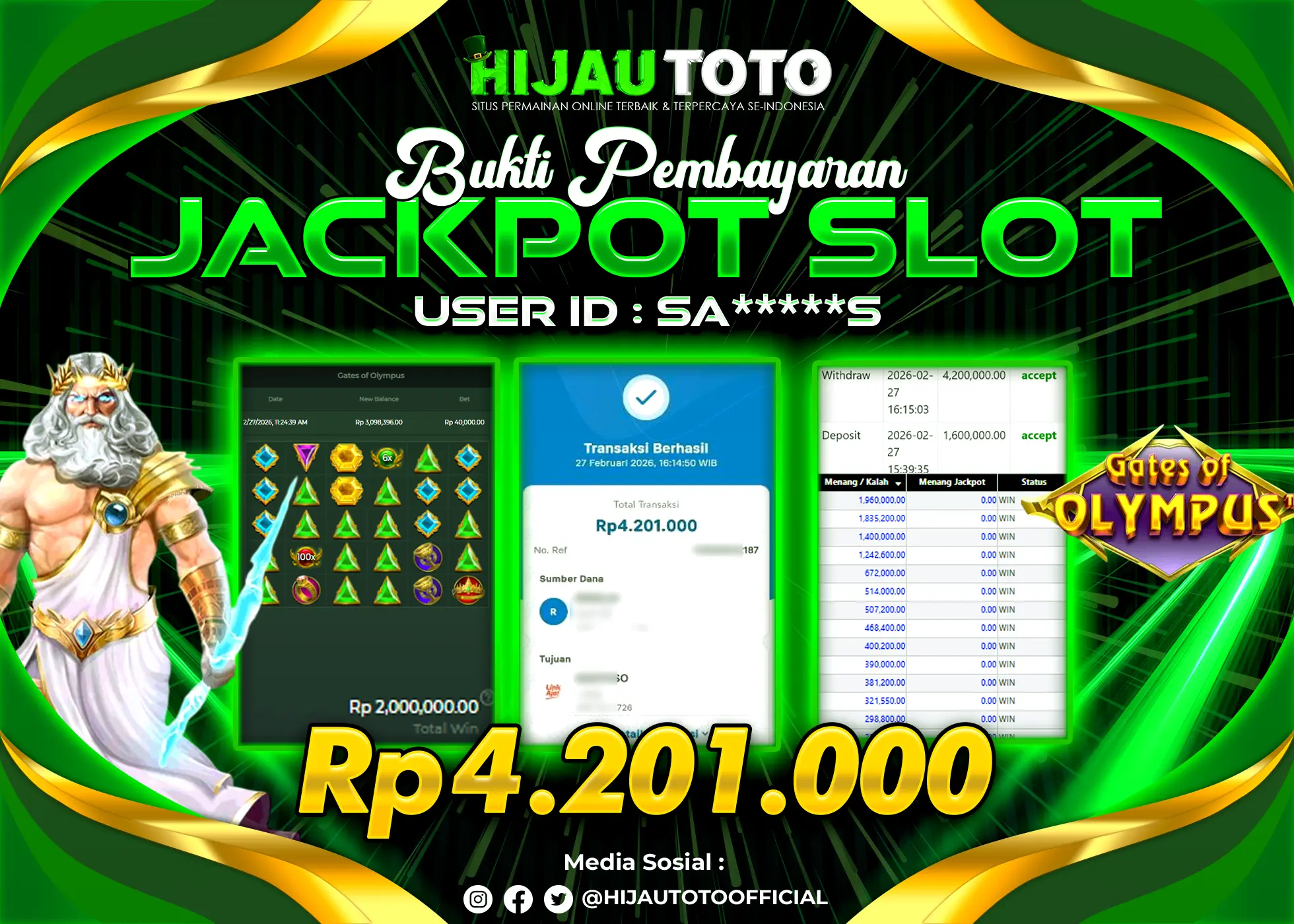 Bergabung dengan HIJAUTOTO sangat mudah dan cepat. Cukup lakukan pendaftaran dengan data lengkap, lakukan deposit minimal Rp5.000 melalui berbagai metode termasuk QRIS, dan mulai bertaruh dengan minimal taruhan Rp100. Dapatkan juga bonus new member 100% untuk modal bermain lebih besar.