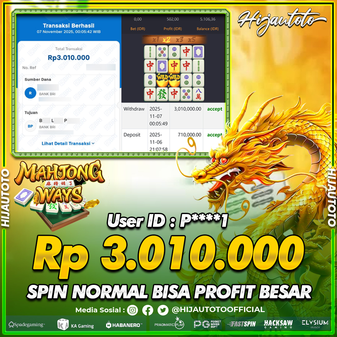 Selamat datang di HIJAUTOTO, tempatnya seru-seruan dan cuan besar! Mulai main cukup dengan modal Rp5.000 aja, taruhan super murah dari Rp100 perak! Mau main slot yang penuh warna? Atau togel dari 20 pasaran paling hits? Atau mungkin tembak ikan yang bikin deg-degan? Tenang, ada juga taruhan bola, sabung ayam, dan live casino yang bikin suasana makin hidup! Daftar sekarang dan dapetin bonus new member 100% langsung, biar modalmu makin tebal. Deposit gampang banget, bisa pakai QRIS, dan kalau butuh bantuan, customer service kita siap 24 jam nonstop. Jadi, tunggu apa lagi? Yuk, gabung dan bawa pulang kemenangannya cuma di HIJAUTOTO!