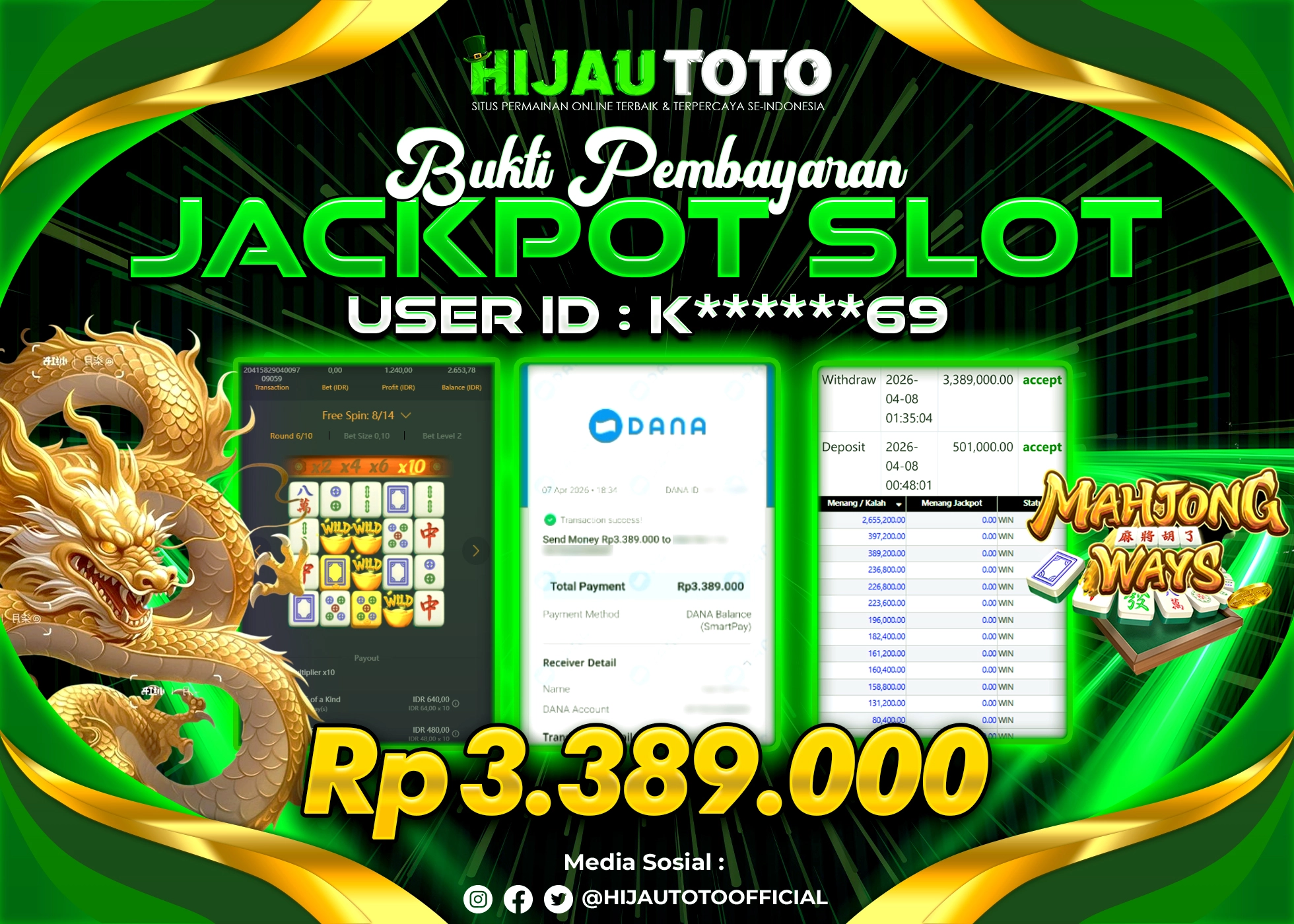 Selamat datang di HIJAUTOTO, tempatnya seru-seruan dan cuan besar! Mulai main cukup dengan modal Rp5.000 aja, taruhan super murah dari Rp100 perak! Mau main slot yang penuh warna? Atau togel dari 20 pasaran paling hits? Atau mungkin tembak ikan yang bikin deg-degan? Tenang, ada juga taruhan bola, sabung ayam, dan live casino yang bikin suasana makin hidup! Daftar sekarang dan dapetin bonus new member 100% langsung, biar modalmu makin tebal. Deposit gampang banget, bisa pakai QRIS, dan kalau butuh bantuan, customer service kita siap 24 jam nonstop. Jadi, tunggu apa lagi? Yuk, gabung dan bawa pulang kemenangannya cuma di HIJAUTOTO!