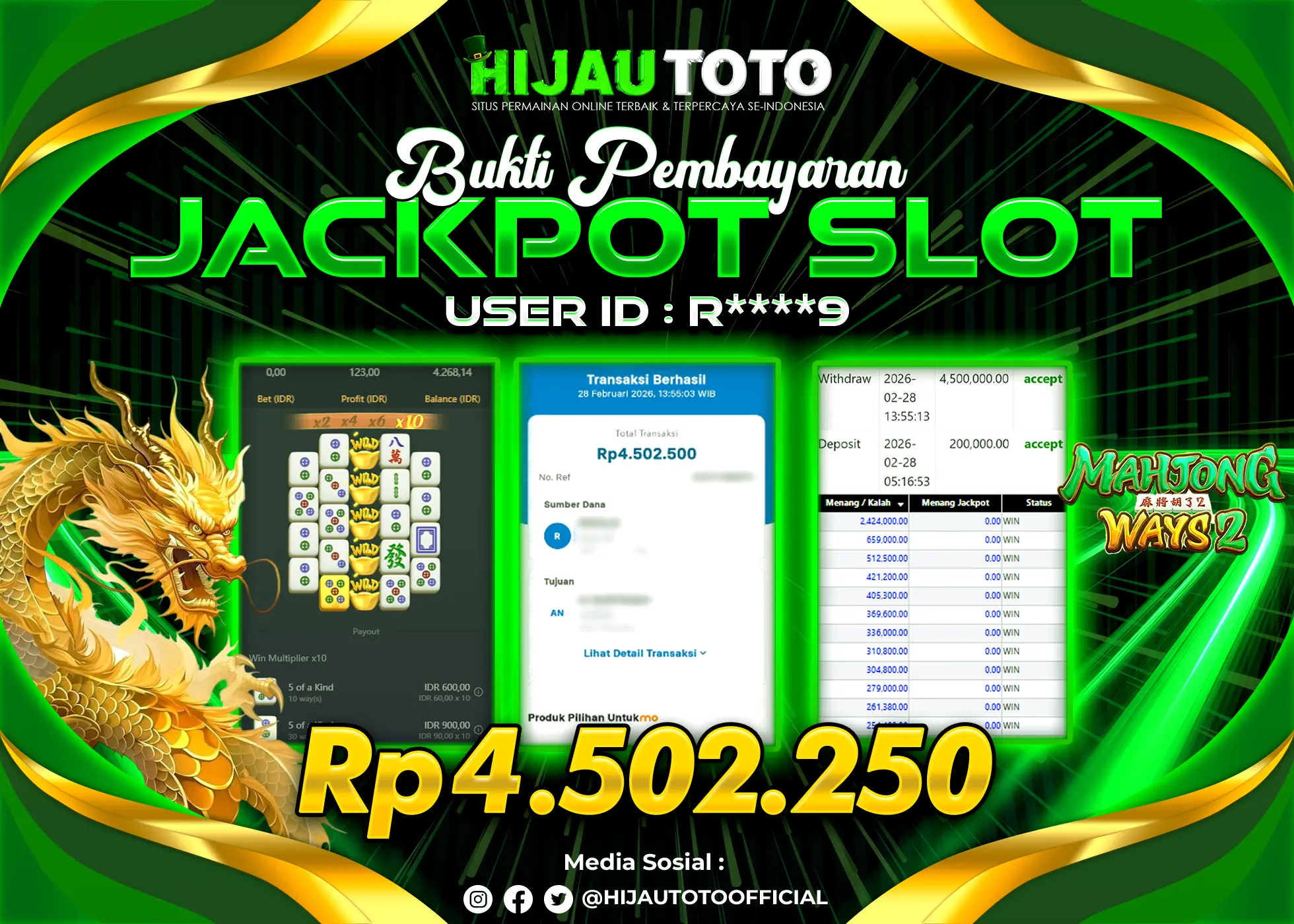 Selamat datang di HIJAUTOTO, tempatnya seru-seruan dan cuan besar! Mulai main cukup dengan modal Rp5.000 aja, taruhan super murah dari Rp100 perak! Mau main slot yang penuh warna? Atau togel dari 20 pasaran paling hits? Atau mungkin tembak ikan yang bikin deg-degan? Tenang, ada juga taruhan bola, sabung ayam, dan live casino yang bikin suasana makin hidup! Daftar sekarang dan dapetin bonus new member 100% langsung, biar modalmu makin tebal. Deposit gampang banget, bisa pakai QRIS, dan kalau butuh bantuan, customer service kita siap 24 jam nonstop. Jadi, tunggu apa lagi? Yuk, gabung dan bawa pulang kemenangannya cuma di HIJAUTOTO!