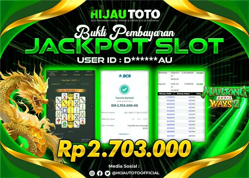 Selamat datang di HIJAUTOTO, tempatnya seru-seruan dan cuan besar! Mulai main cukup dengan modal Rp5.000 aja, taruhan super murah dari Rp100 perak! Mau main slot yang penuh warna? Atau togel dari 20 pasaran paling hits? Atau mungkin tembak ikan yang bikin deg-degan? Tenang, ada juga taruhan bola, sabung ayam, dan live casino yang bikin suasana makin hidup! Daftar sekarang dan dapetin bonus new member 100% langsung, biar modalmu makin tebal. Deposit gampang banget, bisa pakai QRIS, dan kalau butuh bantuan, customer service kita siap 24 jam nonstop. Jadi, tunggu apa lagi? Yuk, gabung dan bawa pulang kemenangannya cuma di HIJAUTOTO!