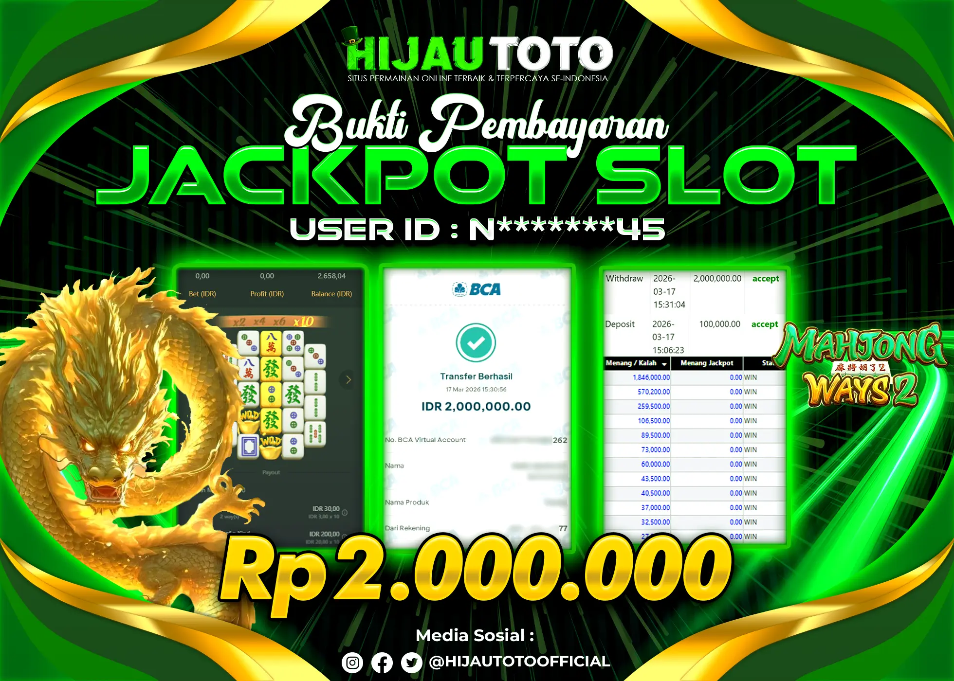 Selamat datang di HIJAUTOTO, tempatnya seru-seruan dan cuan besar! Mulai main cukup dengan modal Rp5.000 aja, taruhan super murah dari Rp100 perak! Mau main slot yang penuh warna? Atau togel dari 20 pasaran paling hits? Atau mungkin tembak ikan yang bikin deg-degan? Tenang, ada juga taruhan bola, sabung ayam, dan live casino yang bikin suasana makin hidup! Daftar sekarang dan dapetin bonus new member 100% langsung, biar modalmu makin tebal. Deposit gampang banget, bisa pakai QRIS, dan kalau butuh bantuan, customer service kita siap 24 jam nonstop. Jadi, tunggu apa lagi? Yuk, gabung dan bawa pulang kemenangannya cuma di HIJAUTOTO!