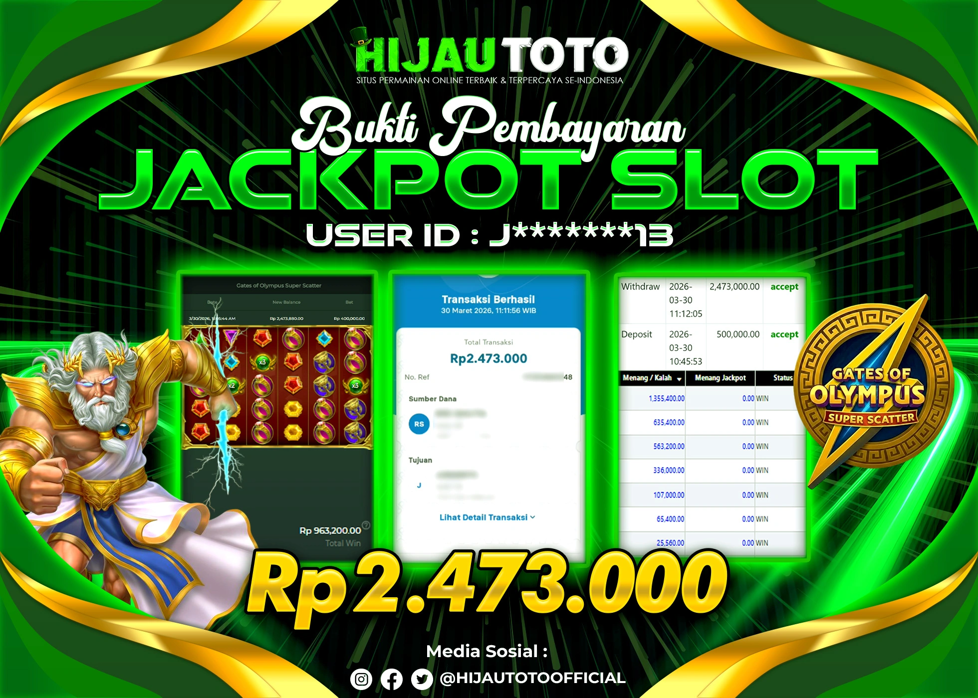 Selamat datang di HIJAUTOTO, tempatnya seru-seruan dan cuan besar! Mulai main cukup dengan modal Rp5.000 aja, taruhan super murah dari Rp100 perak! Mau main slot yang penuh warna? Atau togel dari 20 pasaran paling hits? Atau mungkin tembak ikan yang bikin deg-degan? Tenang, ada juga taruhan bola, sabung ayam, dan live casino yang bikin suasana makin hidup! Daftar sekarang dan dapetin bonus new member 100% langsung, biar modalmu makin tebal. Deposit gampang banget, bisa pakai QRIS, dan kalau butuh bantuan, customer service kita siap 24 jam nonstop. Jadi, tunggu apa lagi? Yuk, gabung dan bawa pulang kemenangannya cuma di HIJAUTOTO!