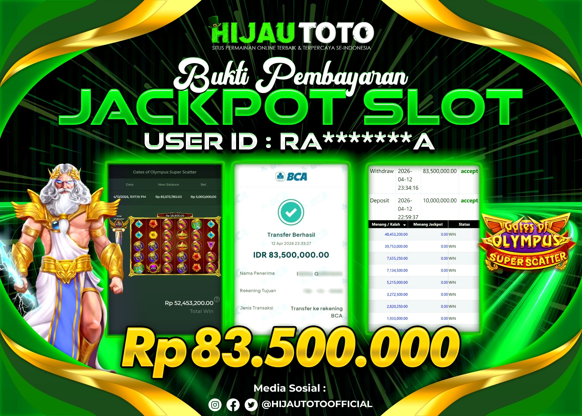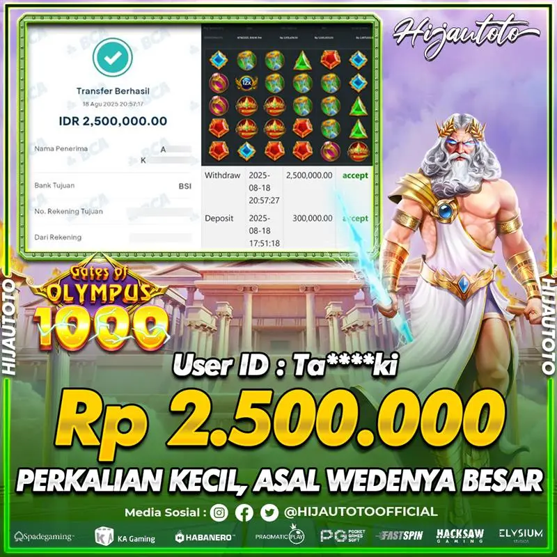 Selamat datang di HIJAUTOTO, tempatnya seru-seruan dan cuan besar! Mulai main cukup dengan modal Rp5.000 aja, taruhan super murah dari Rp100 perak! Mau main slot yang penuh warna? Atau togel dari 20 pasaran paling hits? Atau mungkin tembak ikan yang bikin deg-degan? Tenang, ada juga taruhan bola, sabung ayam, dan live casino yang bikin suasana makin hidup! Daftar sekarang dan dapetin bonus new member 100% langsung, biar modalmu makin tebal. Deposit gampang banget, bisa pakai QRIS, dan kalau butuh bantuan, customer service kita siap 24 jam nonstop. Jadi, tunggu apa lagi? Yuk, gabung dan bawa pulang kemenangannya cuma di HIJAUTOTO!