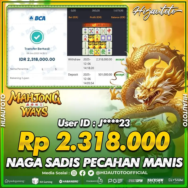 Karena berhasil memenangkan Rp.Rp.2.000.000 dari permainan seru SLOT MAHJONG WAYS di HIJAUTOTO! πŸ’°πŸ’Έ