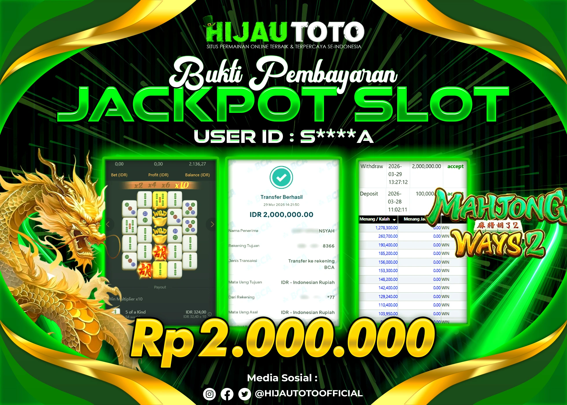 Selamat datang di HIJAUTOTO, tempatnya seru-seruan dan cuan besar! Mulai main cukup dengan modal Rp5.000 aja, taruhan super murah dari Rp100 perak! Mau main slot yang penuh warna? Atau togel dari 20 pasaran paling hits? Atau mungkin tembak ikan yang bikin deg-degan? Tenang, ada juga taruhan bola, sabung ayam, dan live casino yang bikin suasana makin hidup! Daftar sekarang dan dapetin bonus new member 100% langsung, biar modalmu makin tebal. Deposit gampang banget, bisa pakai QRIS, dan kalau butuh bantuan, customer service kita siap 24 jam nonstop. Jadi, tunggu apa lagi? Yuk, gabung dan bawa pulang kemenangannya cuma di HIJAUTOTO!