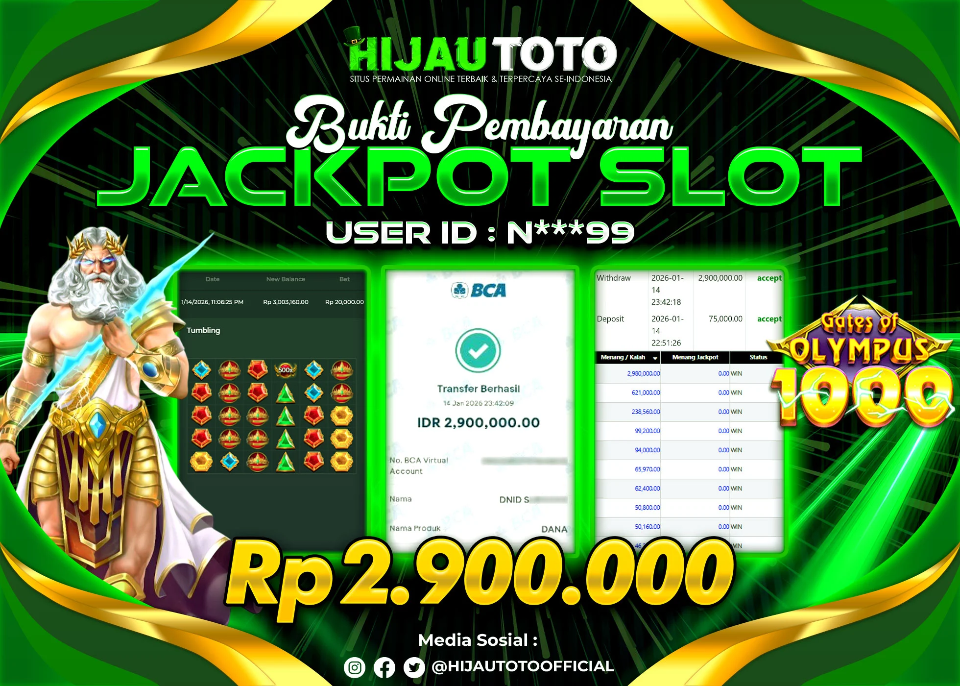 β¨ JACKPOT DI SLOT GATES OF OLYMPUS 1000 β¨
