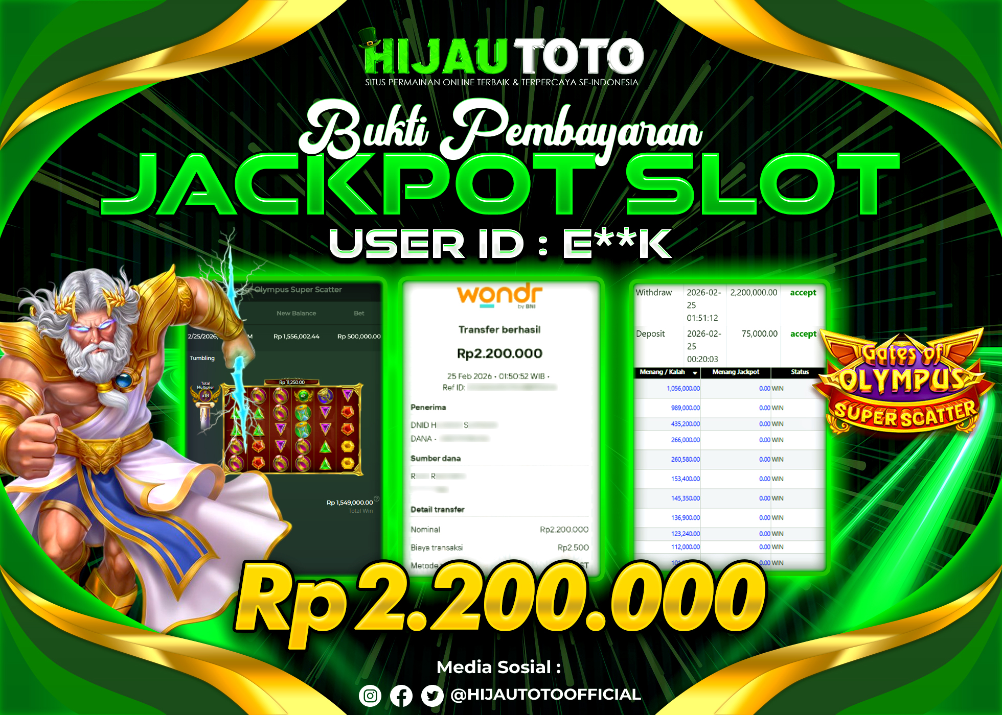Selamat Kepada Member HIJAUTOTO E*** Telah Jackpot Di SLOT GATES OF OLYMPUS SUPER SCATTER