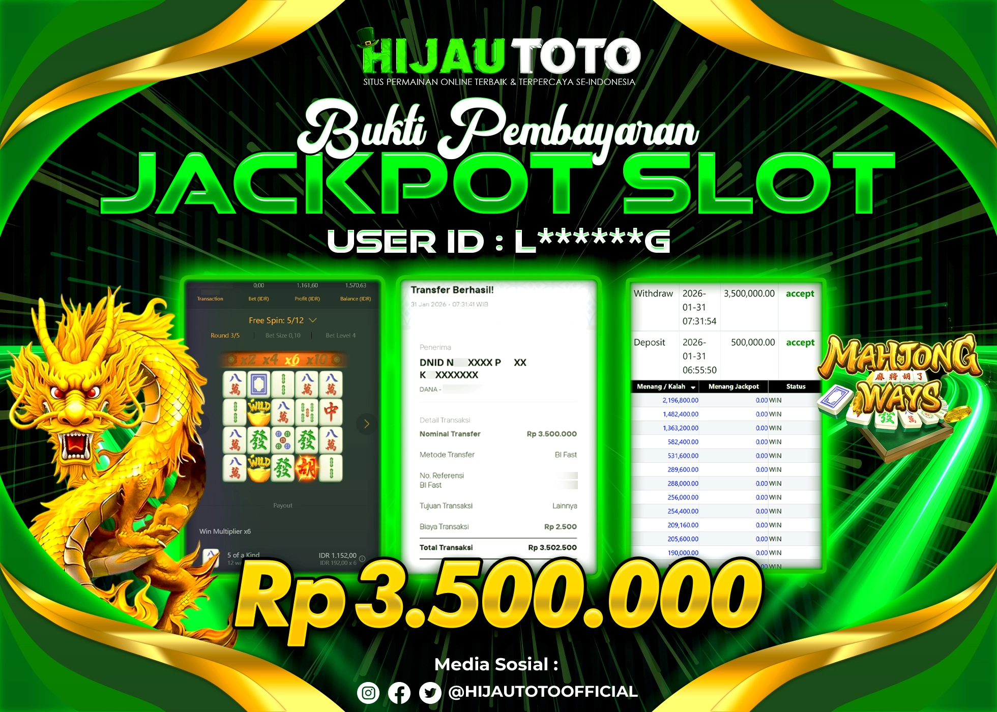 Bergabung dengan HIJAUTOTO sangat mudah dan cepat. Cukup lakukan pendaftaran dengan data lengkap, lakukan deposit minimal Rp5.000 melalui berbagai metode termasuk QRIS, dan mulai bertaruh dengan minimal taruhan Rp100. Dapatkan juga bonus new member 100% untuk modal bermain lebih besar.
