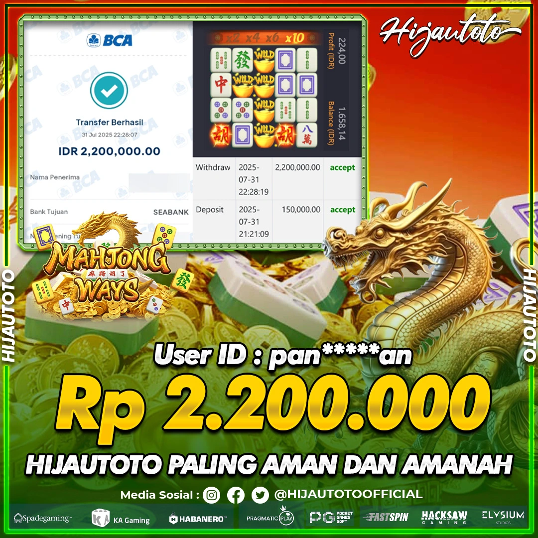 Selamat datang di HIJAUTOTO, tempatnya seru-seruan dan cuan besar! Mulai main cukup dengan modal Rp5.000 aja, taruhan super murah dari Rp100 perak! Mau main slot yang penuh warna? Atau togel dari 20 pasaran paling hits? Atau mungkin tembak ikan yang bikin deg-degan? Tenang, ada juga taruhan bola, sabung ayam, dan live casino yang bikin suasana makin hidup! Daftar sekarang dan dapetin bonus new member 100% langsung, biar modalmu makin tebal. Deposit gampang banget, bisa pakai QRIS, dan kalau butuh bantuan, customer service kita siap 24 jam nonstop. Jadi, tunggu apa lagi? Yuk, gabung dan bawa pulang kemenangannya cuma di HIJAUTOTO!