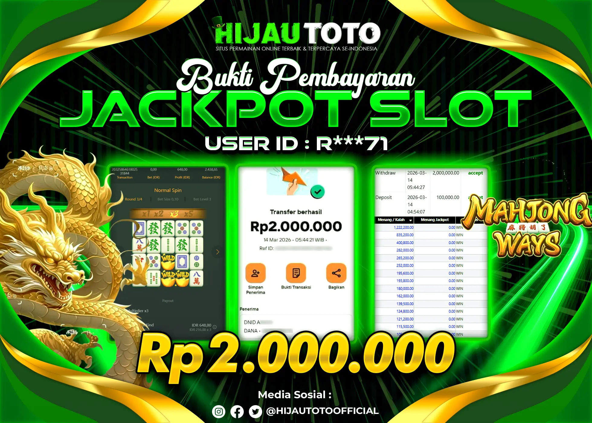 Karena berhasil memenangkan Rp.Rp.2.000.000 dari permainan seru SLOT MAHJONG WAYS di HIJAUTOTO! πŸ’°πŸ’Έ