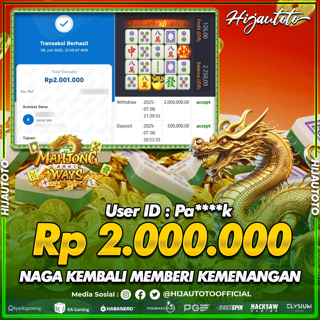 Selamat datang di HIJAUTOTO, tempatnya seru-seruan dan cuan besar! Mulai main cukup dengan modal Rp5.000 aja, taruhan super murah dari Rp100 perak! Mau main slot yang penuh warna? Atau togel dari 20 pasaran paling hits? Atau mungkin tembak ikan yang bikin deg-degan? Tenang, ada juga taruhan bola, sabung ayam, dan live casino yang bikin suasana makin hidup! Daftar sekarang dan dapetin bonus new member 100% langsung, biar modalmu makin tebal. Deposit gampang banget, bisa pakai QRIS, dan kalau butuh bantuan, customer service kita siap 24 jam nonstop. Jadi, tunggu apa lagi? Yuk, gabung dan bawa pulang kemenangannya cuma di HIJAUTOTO!