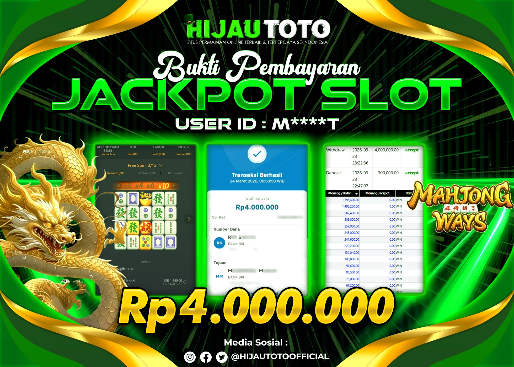 Selamat datang di HIJAUTOTO, tempatnya seru-seruan dan cuan besar! Mulai main cukup dengan modal Rp5.000 aja, taruhan super murah dari Rp100 perak! Mau main slot yang penuh warna? Atau togel dari 20 pasaran paling hits? Atau mungkin tembak ikan yang bikin deg-degan? Tenang, ada juga taruhan bola, sabung ayam, dan live casino yang bikin suasana makin hidup! Daftar sekarang dan dapetin bonus new member 100% langsung, biar modalmu makin tebal. Deposit gampang banget, bisa pakai QRIS, dan kalau butuh bantuan, customer service kita siap 24 jam nonstop. Jadi, tunggu apa lagi? Yuk, gabung dan bawa pulang kemenangannya cuma di HIJAUTOTO!