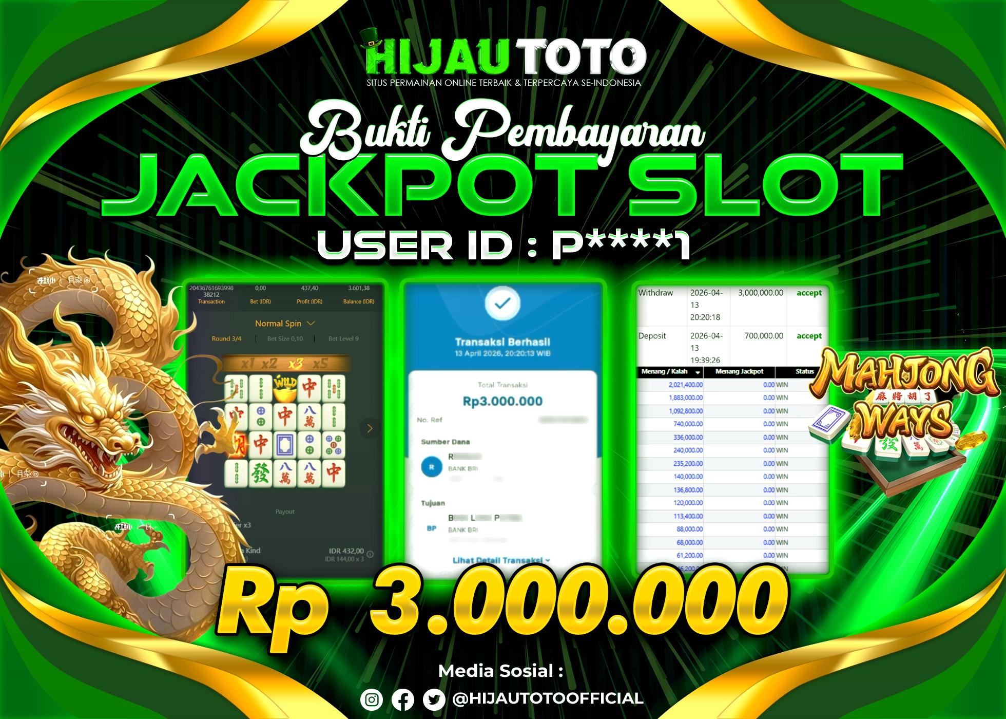 Bergabung dengan HIJAUTOTO sangat mudah dan cepat. Cukup lakukan pendaftaran dengan data lengkap, lakukan deposit minimal Rp5.000 melalui berbagai metode termasuk QRIS, dan mulai bertaruh dengan minimal taruhan Rp100. Dapatkan juga bonus new member 100% untuk modal bermain lebih besar.