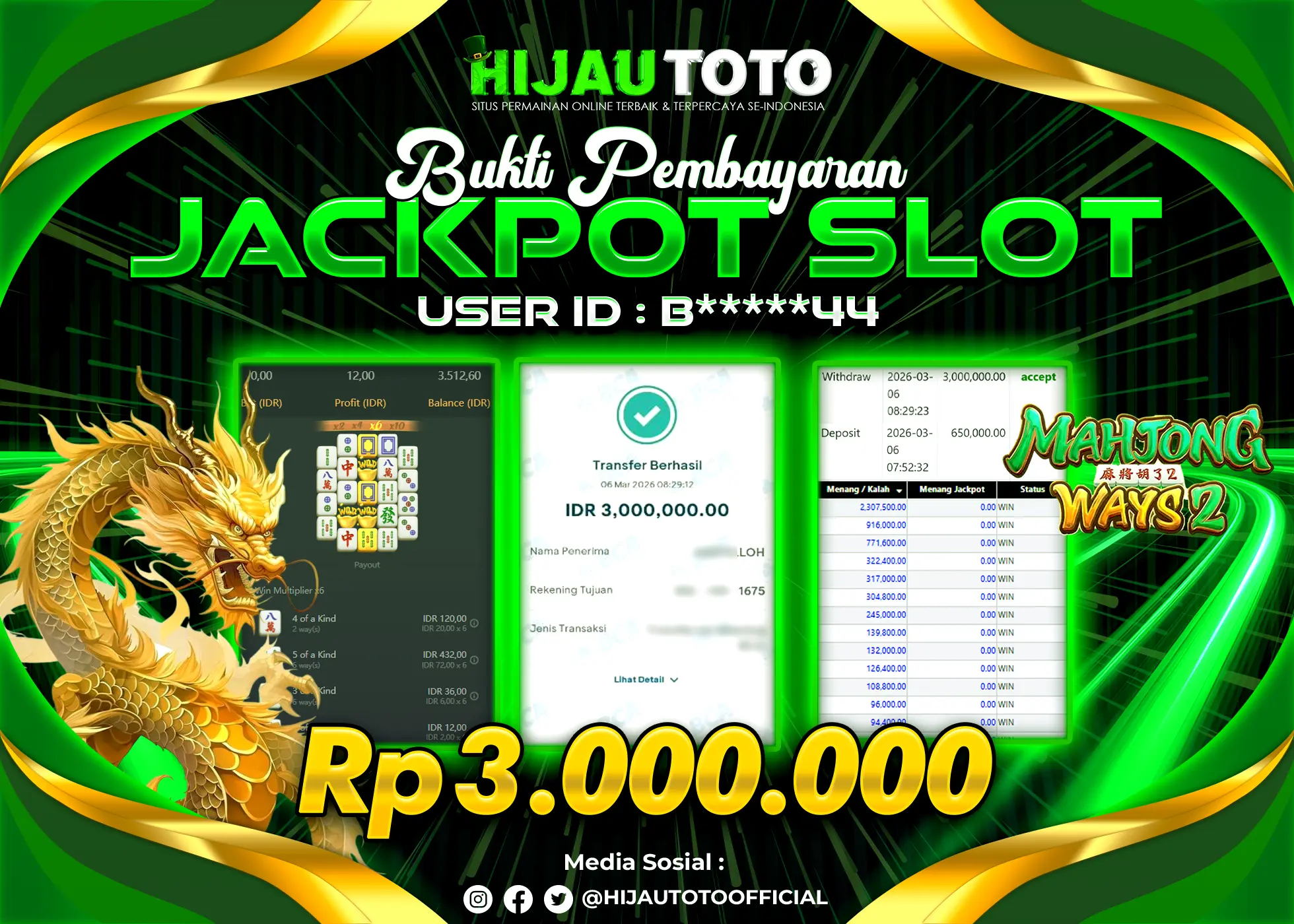 Selamat datang di HIJAUTOTO, tempatnya seru-seruan dan cuan besar! Mulai main cukup dengan modal Rp5.000 aja, taruhan super murah dari Rp100 perak! Mau main slot yang penuh warna? Atau togel dari 20 pasaran paling hits? Atau mungkin tembak ikan yang bikin deg-degan? Tenang, ada juga taruhan bola, sabung ayam, dan live casino yang bikin suasana makin hidup! Daftar sekarang dan dapetin bonus new member 100% langsung, biar modalmu makin tebal. Deposit gampang banget, bisa pakai QRIS, dan kalau butuh bantuan, customer service kita siap 24 jam nonstop. Jadi, tunggu apa lagi? Yuk, gabung dan bawa pulang kemenangannya cuma di HIJAUTOTO!