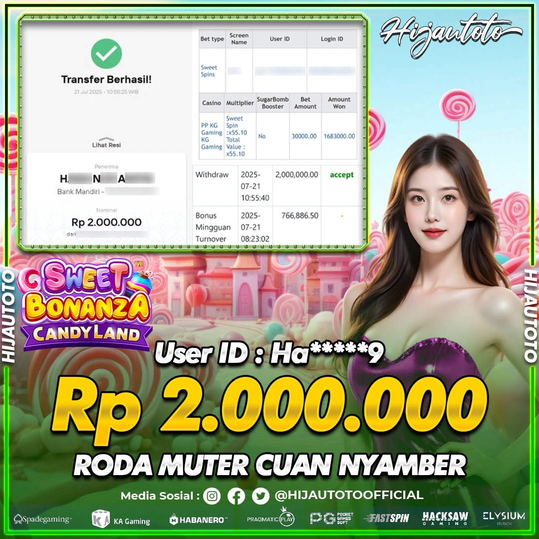 Selamat datang di HIJAUTOTO, tempatnya seru-seruan dan cuan besar! Mulai main cukup dengan modal Rp5.000 aja, taruhan super murah dari Rp100 perak! Mau main slot yang penuh warna? Atau togel dari 20 pasaran paling hits? Atau mungkin tembak ikan yang bikin deg-degan? Tenang, ada juga taruhan bola, sabung ayam, dan live casino yang bikin suasana makin hidup! Daftar sekarang dan dapetin bonus new member 100% langsung, biar modalmu makin tebal. Deposit gampang banget, bisa pakai QRIS, dan kalau butuh bantuan, customer service kita siap 24 jam nonstop. Jadi, tunggu apa lagi? Yuk, gabung dan bawa pulang kemenangannya cuma di HIJAUTOTO!
