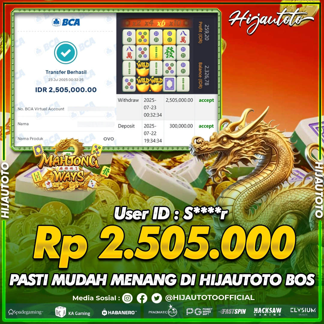 Selamat datang di HIJAUTOTO, tempatnya seru-seruan dan cuan besar! Mulai main cukup dengan modal Rp5.000 aja, taruhan super murah dari Rp100 perak! Mau main slot yang penuh warna? Atau togel dari 20 pasaran paling hits? Atau mungkin tembak ikan yang bikin deg-degan? Tenang, ada juga taruhan bola, sabung ayam, dan live casino yang bikin suasana makin hidup! Daftar sekarang dan dapetin bonus new member 100% langsung, biar modalmu makin tebal. Deposit gampang banget, bisa pakai QRIS, dan kalau butuh bantuan, customer service kita siap 24 jam nonstop. Jadi, tunggu apa lagi? Yuk, gabung dan bawa pulang kemenangannya cuma di HIJAUTOTO!