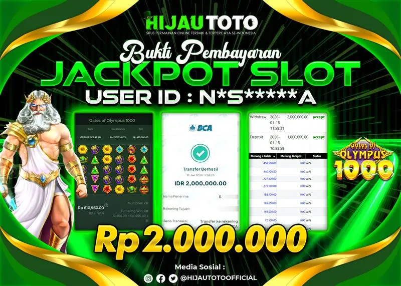 Selamat datang di HIJAUTOTO, tempatnya seru-seruan dan cuan besar! Mulai main cukup dengan modal Rp5.000 aja, taruhan super murah dari Rp100 perak! Mau main slot yang penuh warna? Atau togel dari 20 pasaran paling hits? Atau mungkin tembak ikan yang bikin deg-degan? Tenang, ada juga taruhan bola, sabung ayam, dan live casino yang bikin suasana makin hidup! Daftar sekarang dan dapetin bonus new member 100% langsung, biar modalmu makin tebal. Deposit gampang banget, bisa pakai QRIS, dan kalau butuh bantuan, customer service kita siap 24 jam nonstop. Jadi, tunggu apa lagi? Yuk, gabung dan bawa pulang kemenangannya cuma di HIJAUTOTO!