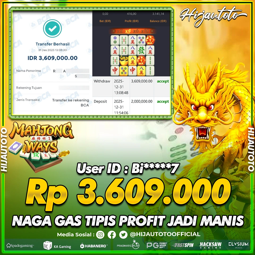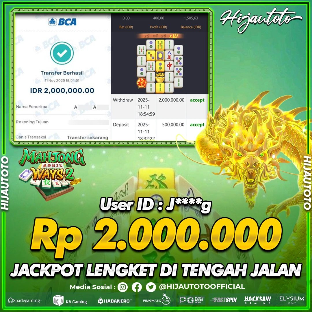 Selamat Kepada Member HIJAUTOTO J****G Telah Jackpot Di SLOT MAHJONG WAYS 2