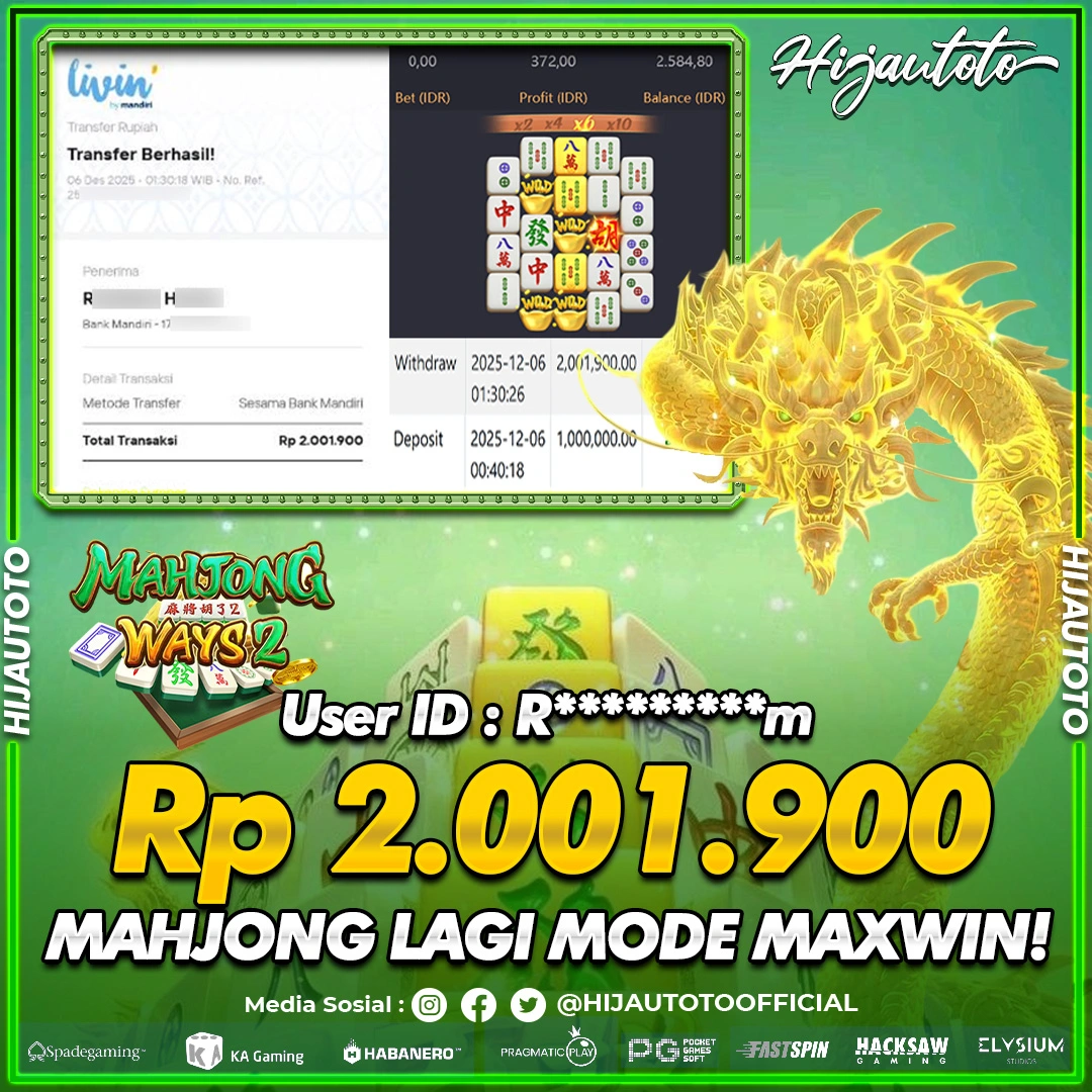 Selamat datang di HIJAUTOTO, tempatnya seru-seruan dan cuan besar! Mulai main cukup dengan modal Rp5.000 aja, taruhan super murah dari Rp100 perak! Mau main slot yang penuh warna? Atau togel dari 20 pasaran paling hits? Atau mungkin tembak ikan yang bikin deg-degan? Tenang, ada juga taruhan bola, sabung ayam, dan live casino yang bikin suasana makin hidup! Daftar sekarang dan dapetin bonus new member 100% langsung, biar modalmu makin tebal. Deposit gampang banget, bisa pakai QRIS, dan kalau butuh bantuan, customer service kita siap 24 jam nonstop. Jadi, tunggu apa lagi? Yuk, gabung dan bawa pulang kemenangannya cuma di HIJAUTOTO!
