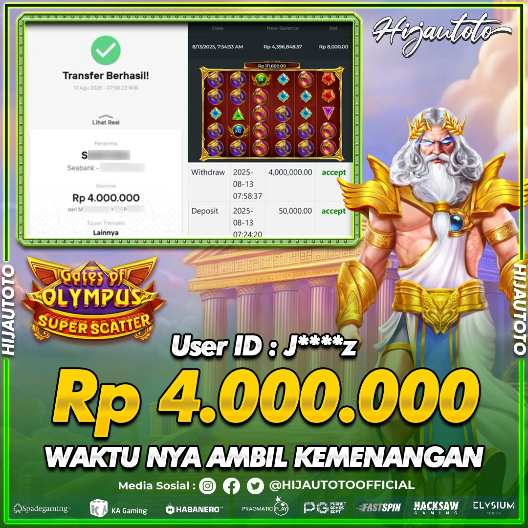 Selamat Kepada Member HIJAUTOTO J****Z Telah Jackpot Di SLOT GATES OF OLYMPUS SUPER SCATTER