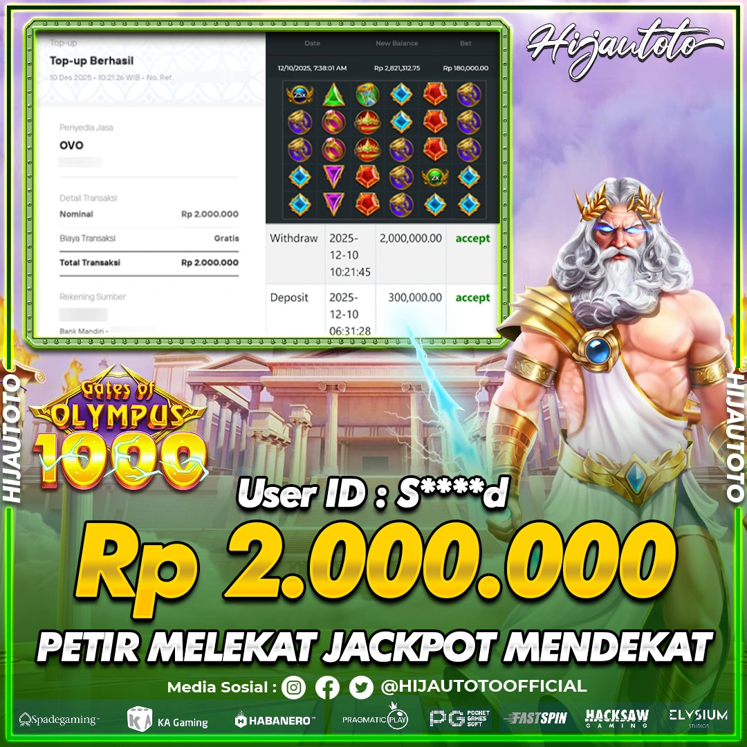 Selamat datang di HIJAUTOTO, tempatnya seru-seruan dan cuan besar! Mulai main cukup dengan modal Rp5.000 aja, taruhan super murah dari Rp100 perak! Mau main slot yang penuh warna? Atau togel dari 20 pasaran paling hits? Atau mungkin tembak ikan yang bikin deg-degan? Tenang, ada juga taruhan bola, sabung ayam, dan live casino yang bikin suasana makin hidup! Daftar sekarang dan dapetin bonus new member 100% langsung, biar modalmu makin tebal. Deposit gampang banget, bisa pakai QRIS, dan kalau butuh bantuan, customer service kita siap 24 jam nonstop. Jadi, tunggu apa lagi? Yuk, gabung dan bawa pulang kemenangannya cuma di HIJAUTOTO!