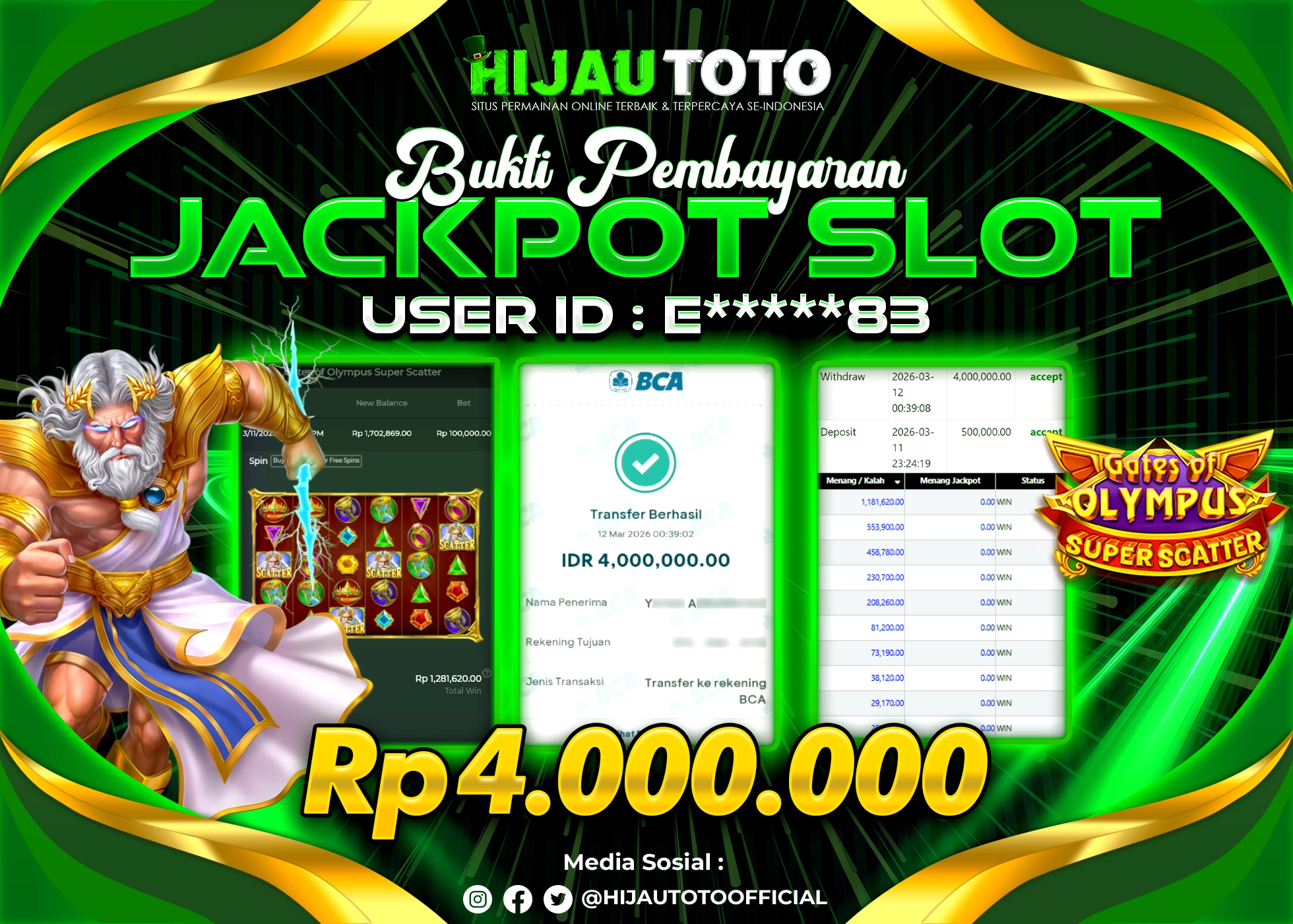 Bergabung dengan HIJAUTOTO sangat mudah dan cepat. Cukup lakukan pendaftaran dengan data lengkap, lakukan deposit minimal Rp5.000 melalui berbagai metode termasuk QRIS, dan mulai bertaruh dengan minimal taruhan Rp100. Dapatkan juga bonus new member 100% untuk modal bermain lebih besar.