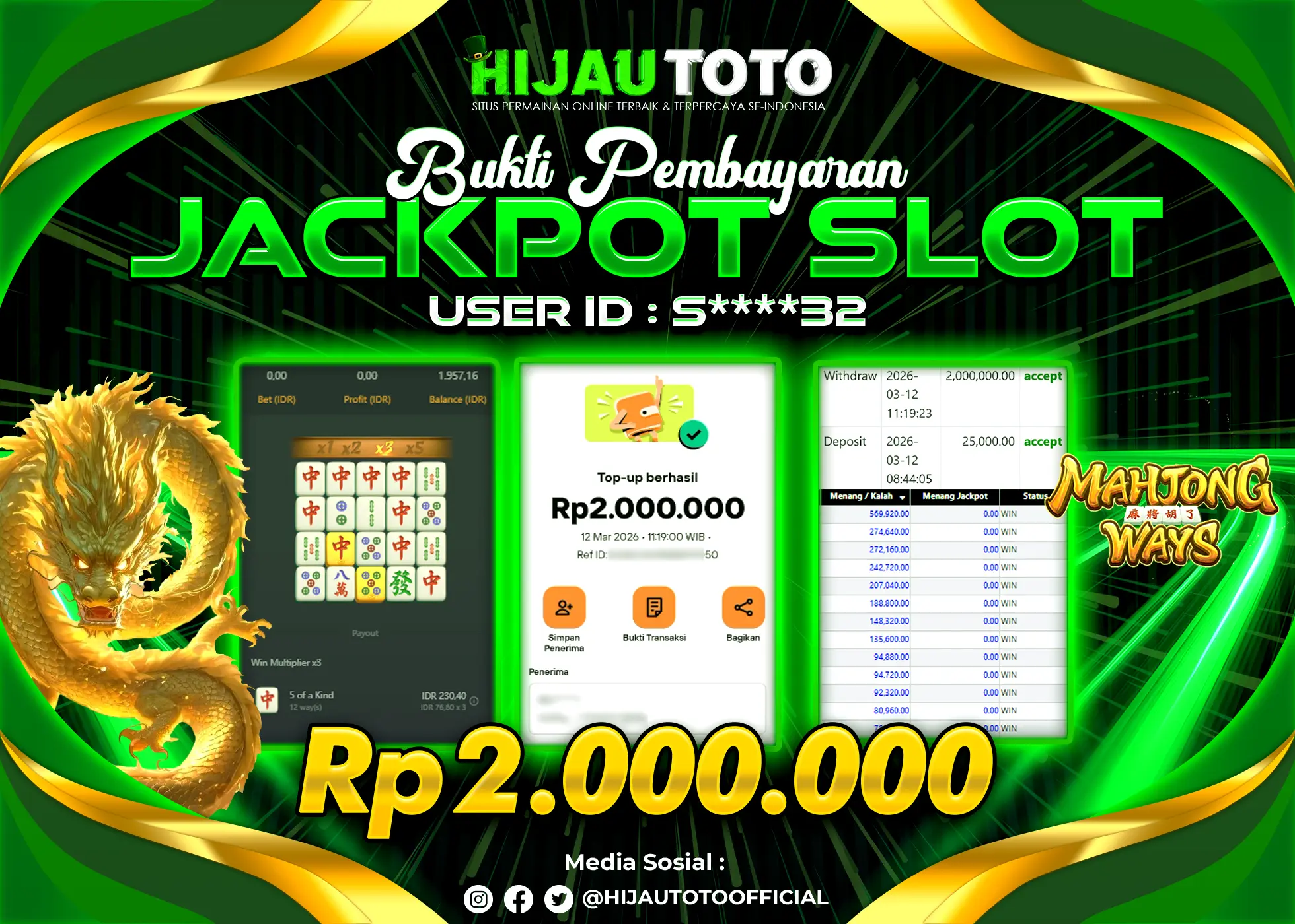 Bergabung dengan HIJAUTOTO sangat mudah dan cepat. Cukup lakukan pendaftaran dengan data lengkap, lakukan deposit minimal Rp5.000 melalui berbagai metode termasuk QRIS, dan mulai bertaruh dengan minimal taruhan Rp100. Dapatkan juga bonus new member 100% untuk modal bermain lebih besar.