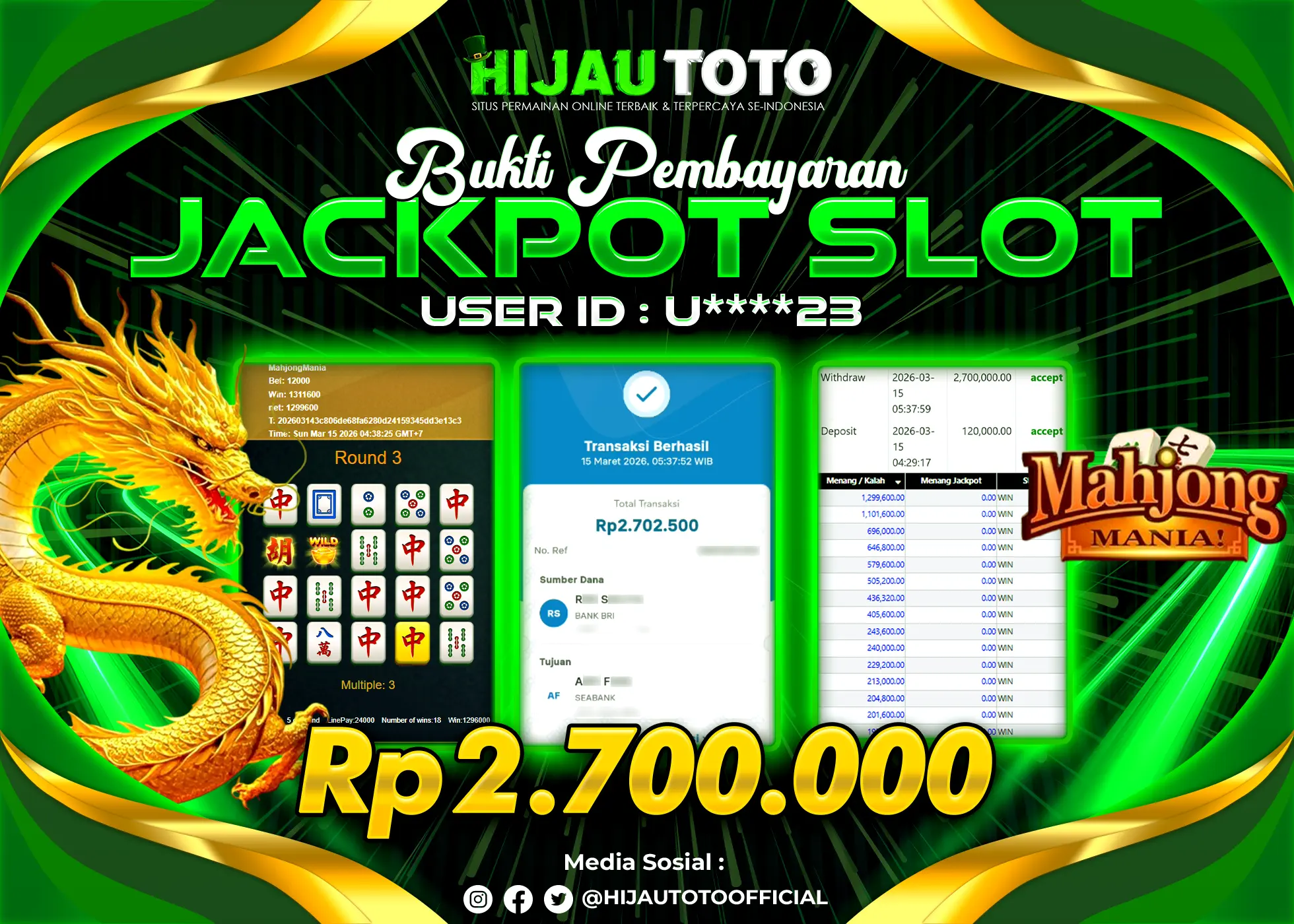 Selamat datang di HIJAUTOTO, tempatnya seru-seruan dan cuan besar! Mulai main cukup dengan modal Rp5.000 aja, taruhan super murah dari Rp100 perak! Mau main slot yang penuh warna? Atau togel dari 20 pasaran paling hits? Atau mungkin tembak ikan yang bikin deg-degan? Tenang, ada juga taruhan bola, sabung ayam, dan live casino yang bikin suasana makin hidup! Daftar sekarang dan dapetin bonus new member 100% langsung, biar modalmu makin tebal. Deposit gampang banget, bisa pakai QRIS, dan kalau butuh bantuan, customer service kita siap 24 jam nonstop. Jadi, tunggu apa lagi? Yuk, gabung dan bawa pulang kemenangannya cuma di HIJAUTOTO!