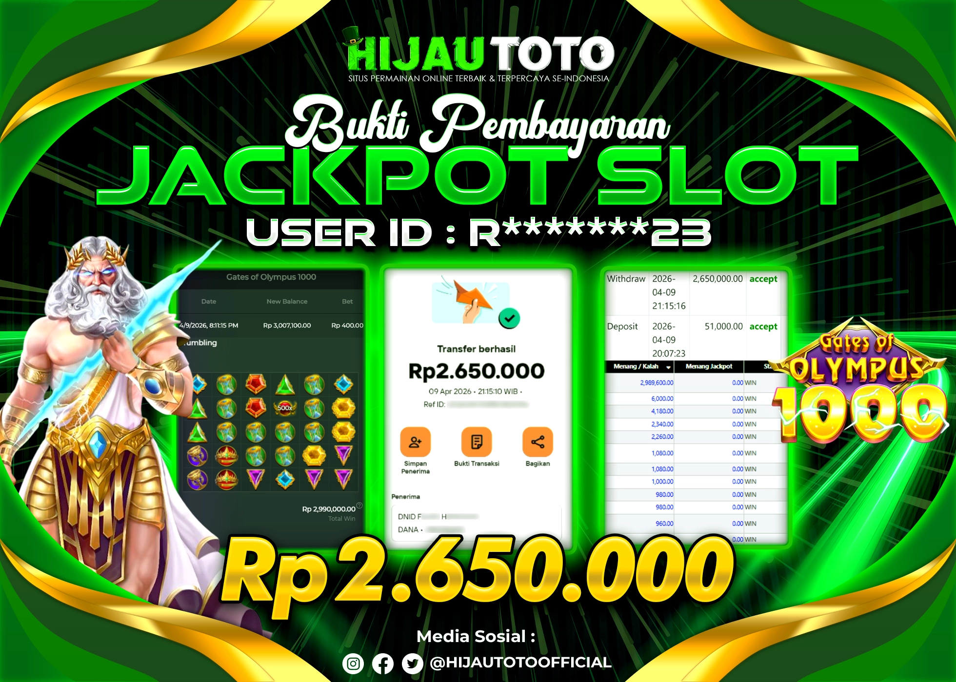 β¨ JACKPOT DI SLOT GATES OF OLYMPUS 1000 β¨