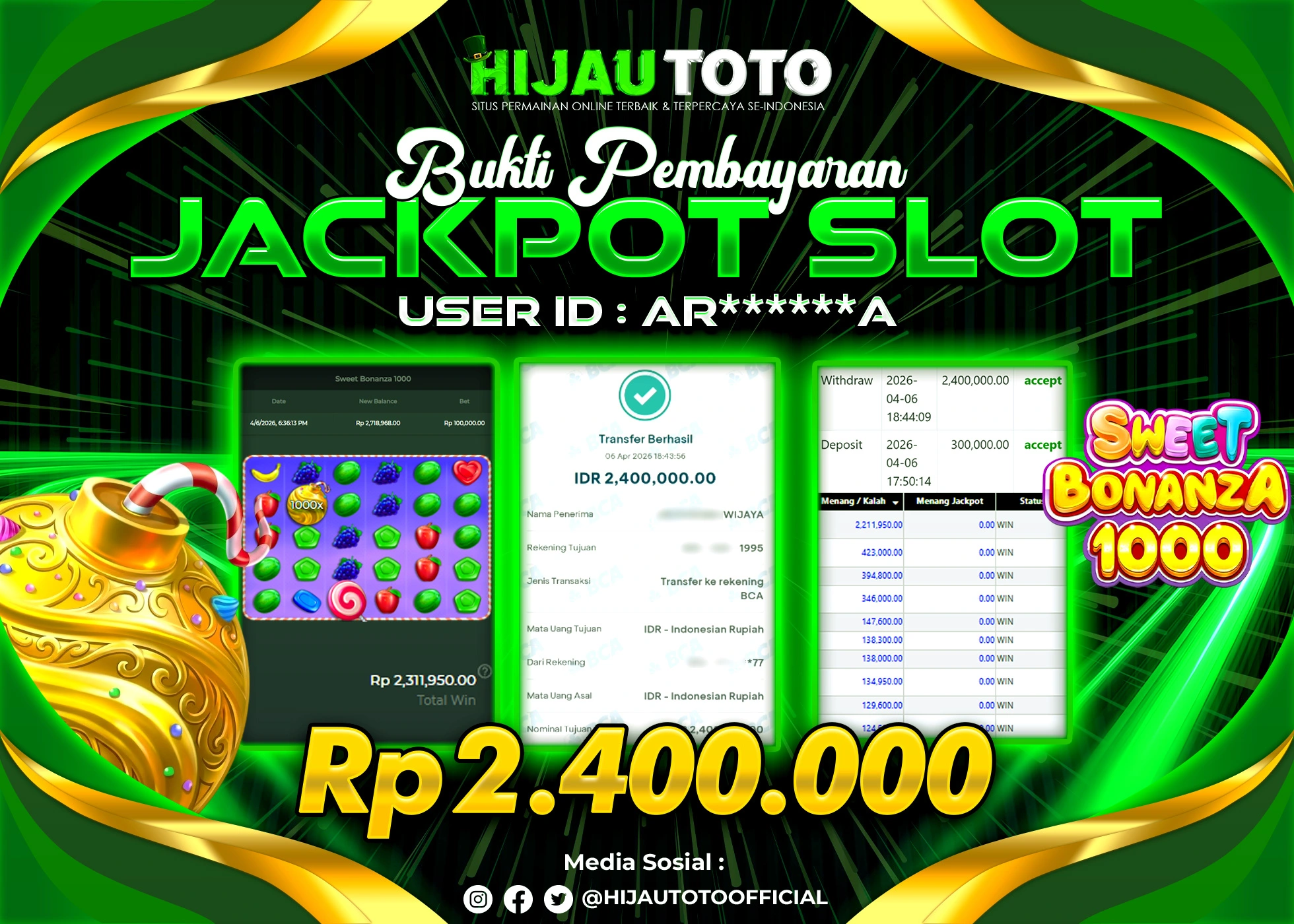 β¨ JACKPOT DI SLOT SWEET BONANZA 1000 β¨