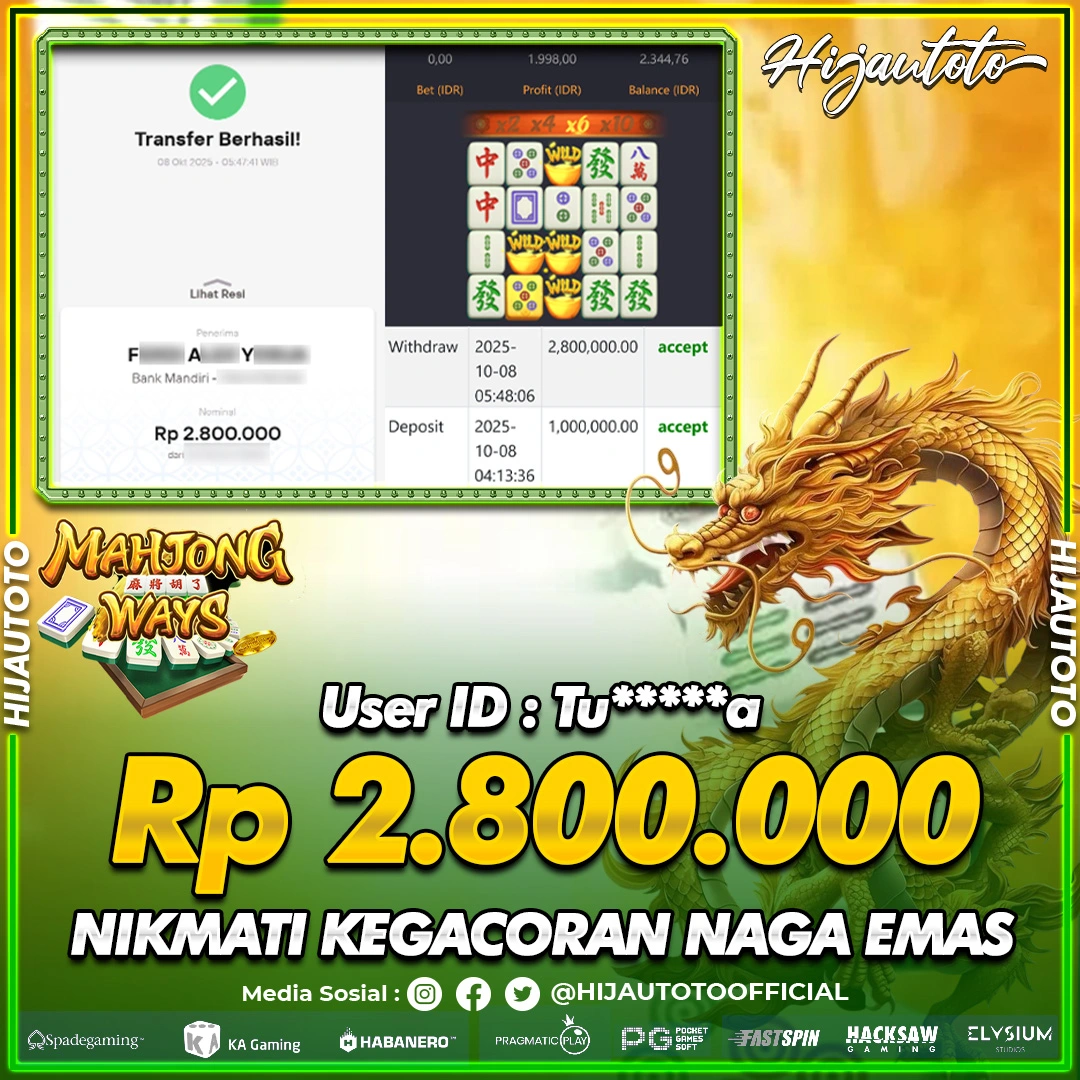 Bergabung dengan HIJAUTOTO sangat mudah dan cepat. Cukup lakukan pendaftaran dengan data lengkap, lakukan deposit minimal Rp5.000 melalui berbagai metode termasuk QRIS, dan mulai bertaruh dengan minimal taruhan Rp100. Dapatkan juga bonus new member 100% untuk modal bermain lebih besar.