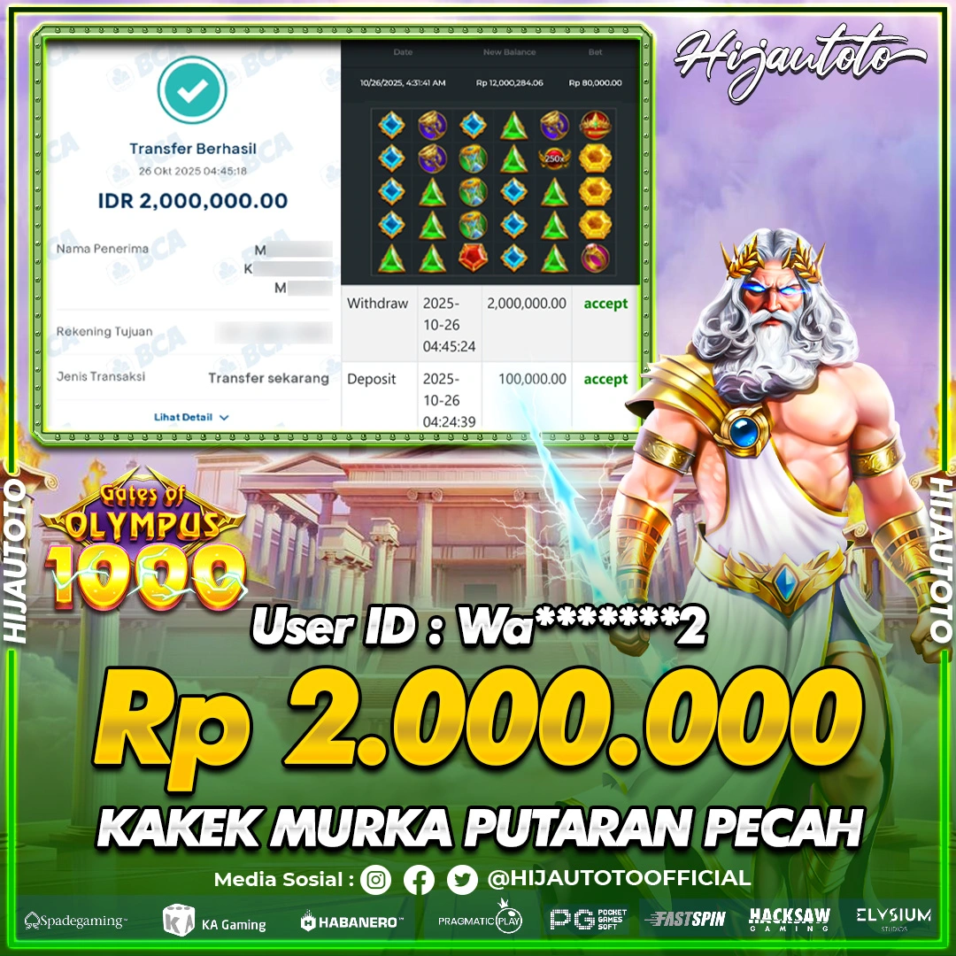 Selamat datang di HIJAUTOTO, tempatnya seru-seruan dan cuan besar! Mulai main cukup dengan modal Rp5.000 aja, taruhan super murah dari Rp100 perak! Mau main slot yang penuh warna? Atau togel dari 20 pasaran paling hits? Atau mungkin tembak ikan yang bikin deg-degan? Tenang, ada juga taruhan bola, sabung ayam, dan live casino yang bikin suasana makin hidup! Daftar sekarang dan dapetin bonus new member 100% langsung, biar modalmu makin tebal. Deposit gampang banget, bisa pakai QRIS, dan kalau butuh bantuan, customer service kita siap 24 jam nonstop. Jadi, tunggu apa lagi? Yuk, gabung dan bawa pulang kemenangannya cuma di HIJAUTOTO!
