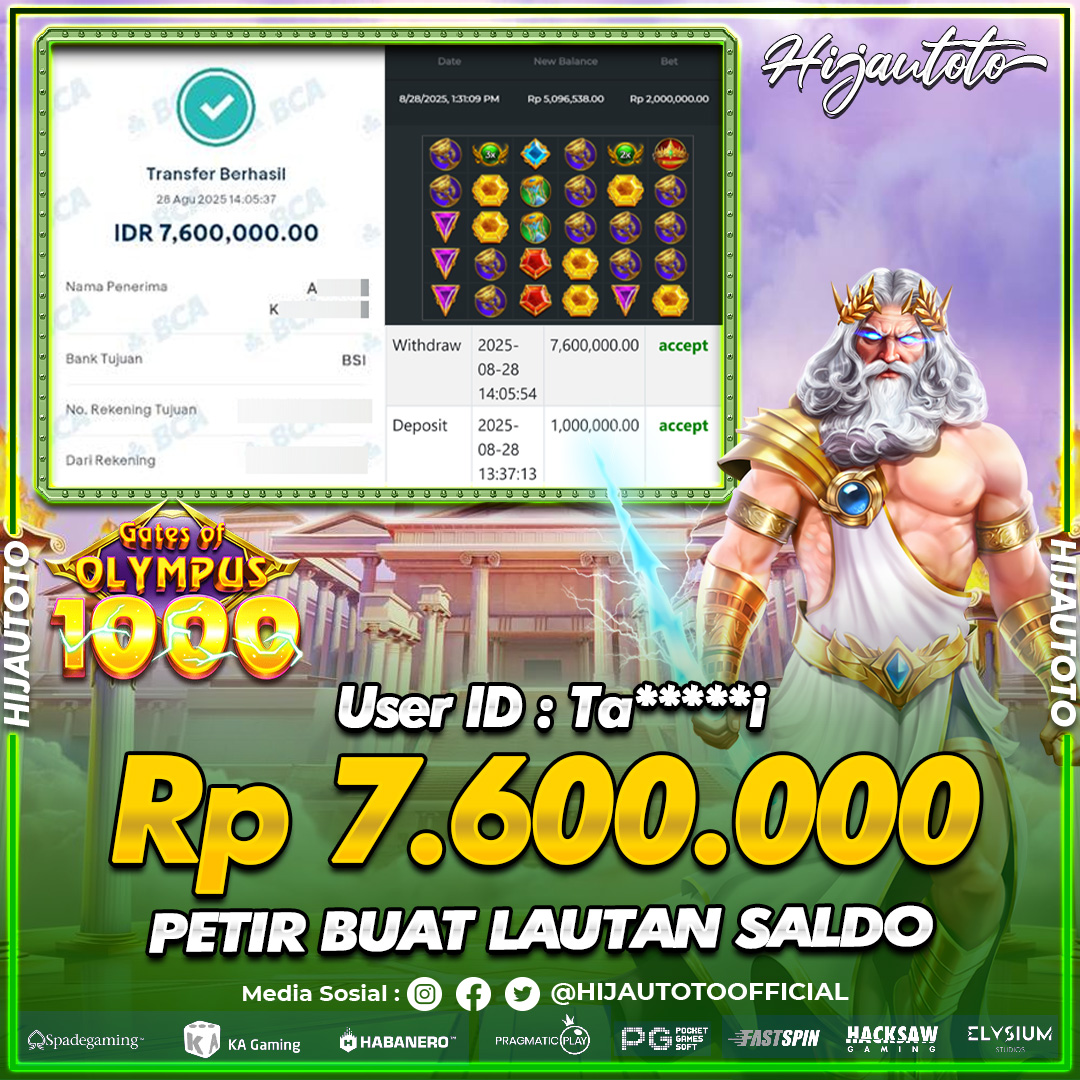 Selamat Kepada Member HIJAUTOTO TA*****I Telah Jackpot Di SLOT GATES OF OLYMPUS 1000