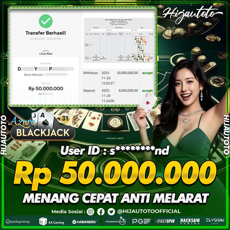 β¨ JACKPOT DI SLOT AZURE BLACKJACK 31 β¨