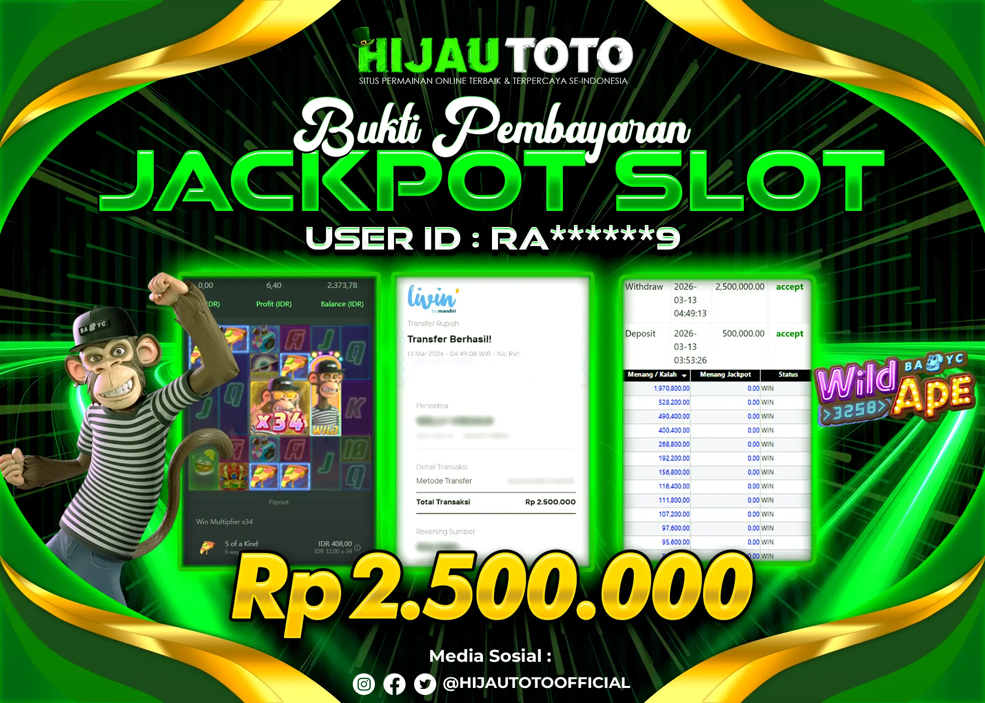 Selamat datang di HIJAUTOTO, tempatnya seru-seruan dan cuan besar! Mulai main cukup dengan modal Rp5.000 aja, taruhan super murah dari Rp100 perak! Mau main slot yang penuh warna? Atau togel dari 20 pasaran paling hits? Atau mungkin tembak ikan yang bikin deg-degan? Tenang, ada juga taruhan bola, sabung ayam, dan live casino yang bikin suasana makin hidup! Daftar sekarang dan dapetin bonus new member 100% langsung, biar modalmu makin tebal. Deposit gampang banget, bisa pakai QRIS, dan kalau butuh bantuan, customer service kita siap 24 jam nonstop. Jadi, tunggu apa lagi? Yuk, gabung dan bawa pulang kemenangannya cuma di HIJAUTOTO!