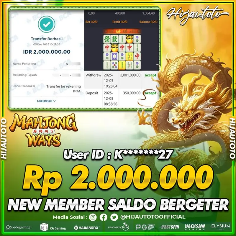Bergabung dengan HIJAUTOTO sangat mudah dan cepat. Cukup lakukan pendaftaran dengan data lengkap, lakukan deposit minimal Rp5.000 melalui berbagai metode termasuk QRIS, dan mulai bertaruh dengan minimal taruhan Rp100. Dapatkan juga bonus new member 100% untuk modal bermain lebih besar.