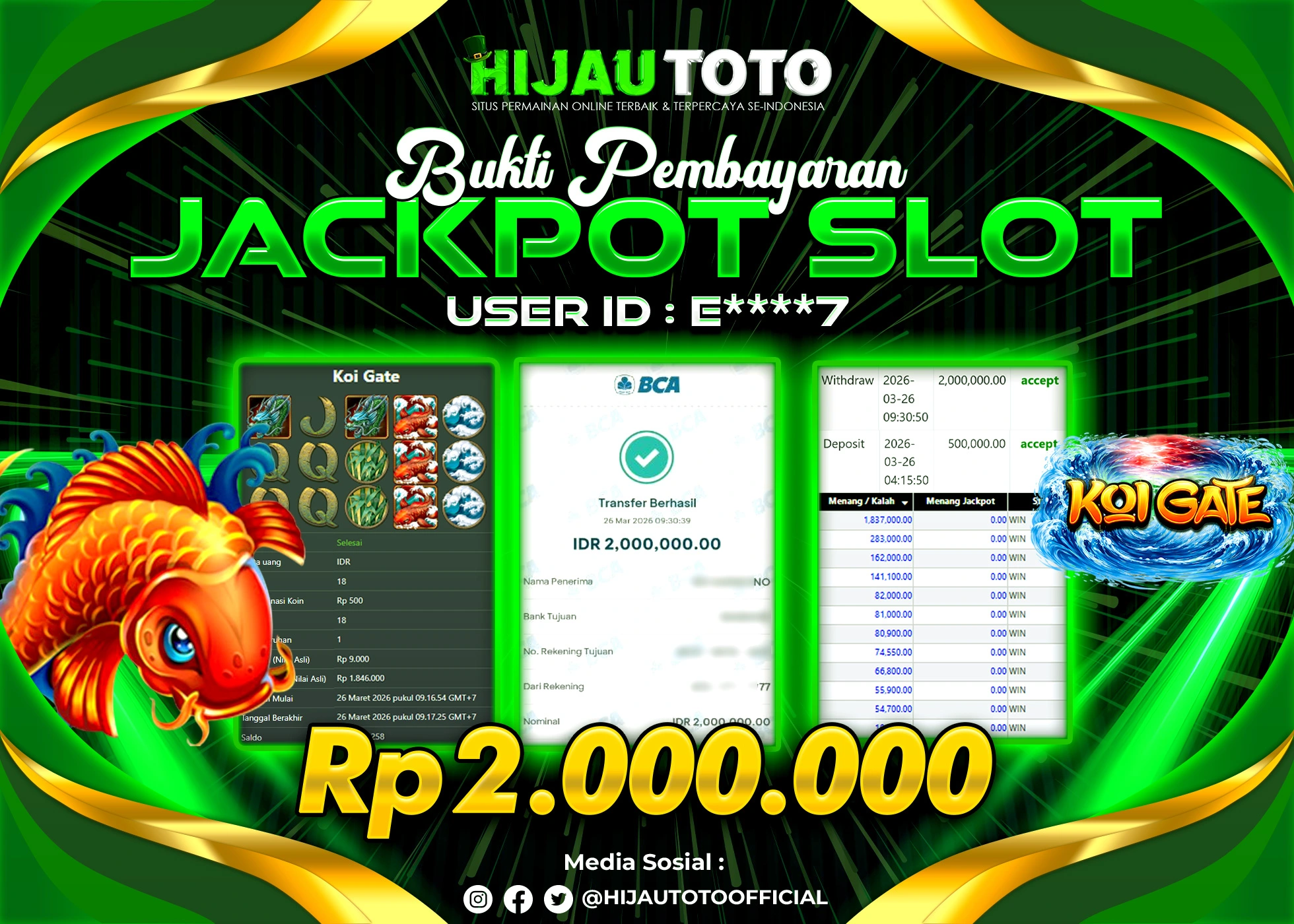 Selamat datang di HIJAUTOTO, tempatnya seru-seruan dan cuan besar! Mulai main cukup dengan modal Rp5.000 aja, taruhan super murah dari Rp100 perak! Mau main slot yang penuh warna? Atau togel dari 20 pasaran paling hits? Atau mungkin tembak ikan yang bikin deg-degan? Tenang, ada juga taruhan bola, sabung ayam, dan live casino yang bikin suasana makin hidup! Daftar sekarang dan dapetin bonus new member 100% langsung, biar modalmu makin tebal. Deposit gampang banget, bisa pakai QRIS, dan kalau butuh bantuan, customer service kita siap 24 jam nonstop. Jadi, tunggu apa lagi? Yuk, gabung dan bawa pulang kemenangannya cuma di HIJAUTOTO!