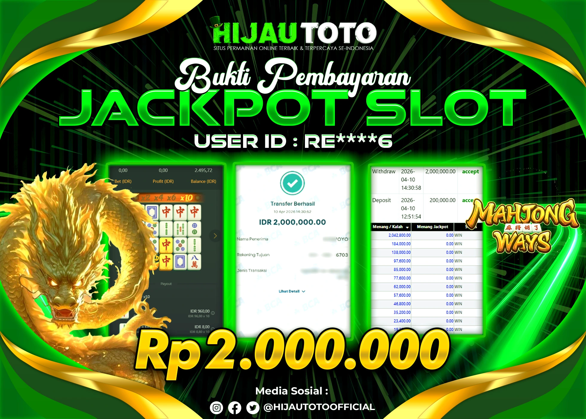 Selamat datang di HIJAUTOTO, tempatnya seru-seruan dan cuan besar! Mulai main cukup dengan modal Rp5.000 aja, taruhan super murah dari Rp100 perak! Mau main slot yang penuh warna? Atau togel dari 20 pasaran paling hits? Atau mungkin tembak ikan yang bikin deg-degan? Tenang, ada juga taruhan bola, sabung ayam, dan live casino yang bikin suasana makin hidup! Daftar sekarang dan dapetin bonus new member 100% langsung, biar modalmu makin tebal. Deposit gampang banget, bisa pakai QRIS, dan kalau butuh bantuan, customer service kita siap 24 jam nonstop. Jadi, tunggu apa lagi? Yuk, gabung dan bawa pulang kemenangannya cuma di HIJAUTOTO!